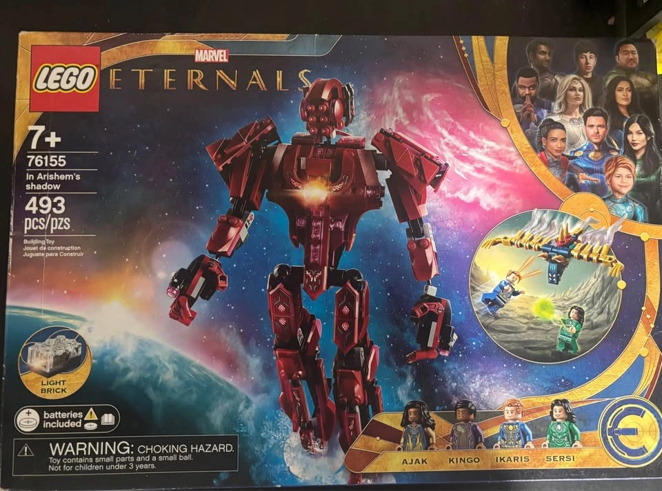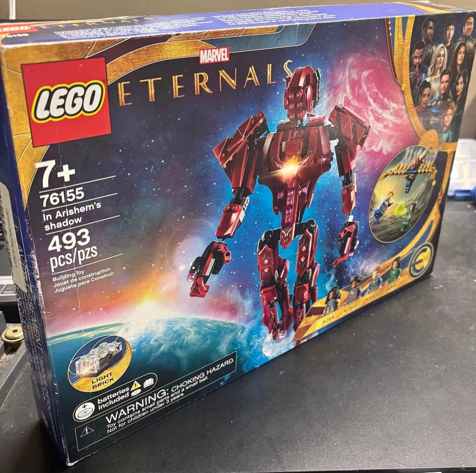 LEGO Marvel The Eternals In Arishem’s Shadow Set #76155 with 493 pieces. This is a sealed set but does have some shelf wear.