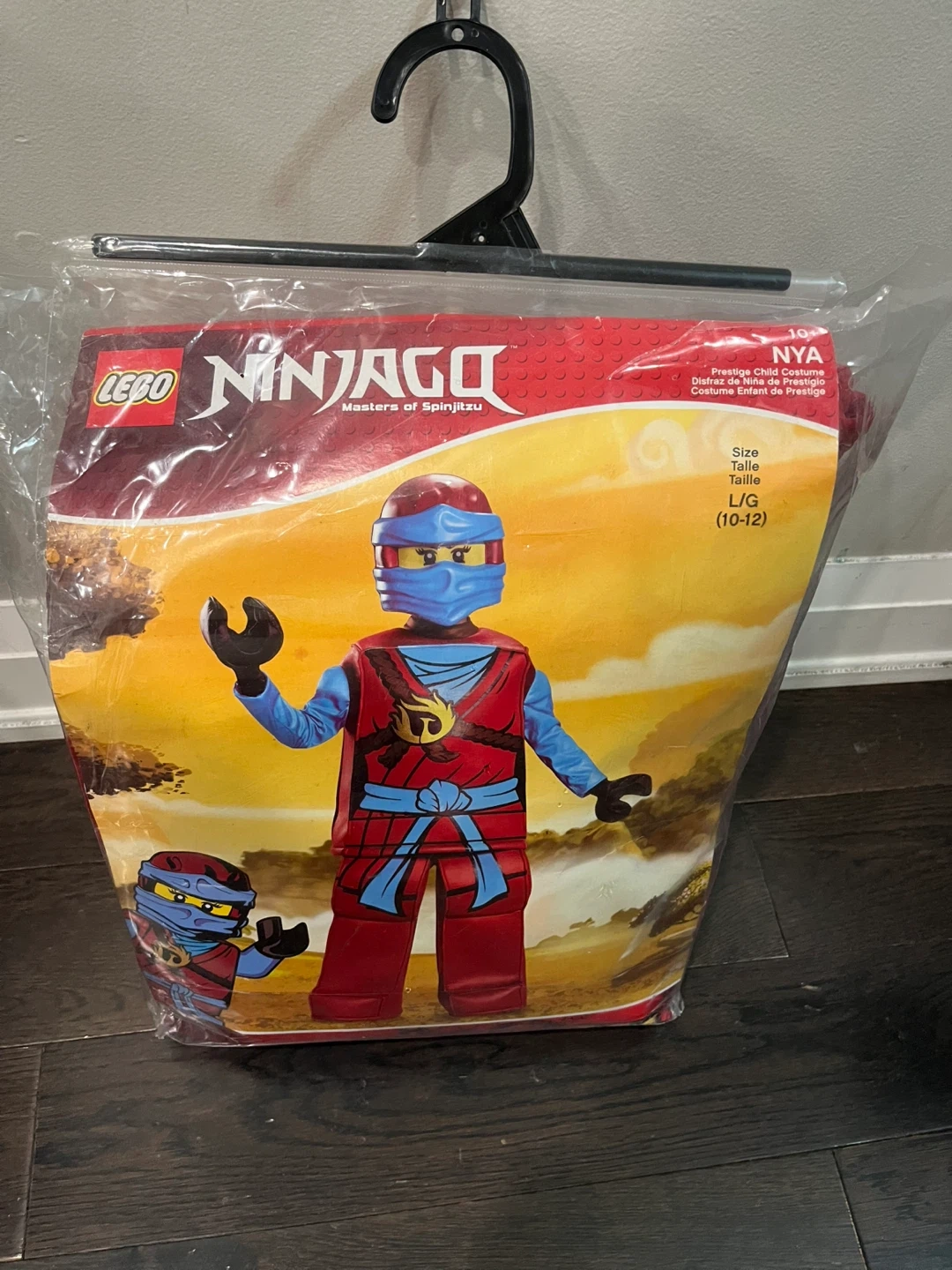 10Selling a LEGO Ninjago Nya costume for kids! This is a size Large (10-12). In excellent condition. Two-piece outfit (top and pants) with mask and gloves included. Perfect for Halloween or dress-up fun.