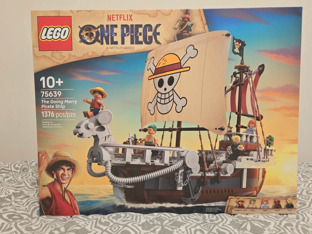 5Hello fellow Straw Hats! Up for grabs is the LEGO One Piece Going Merry Pirate Ship, set number 75639. This set is perfect for builders aged 10 and up and includes 1376 pieces to construct the iconic ship from the Netflix series. Two random wanted posters are also included. Get ready to set sail on a LEGO adventure!