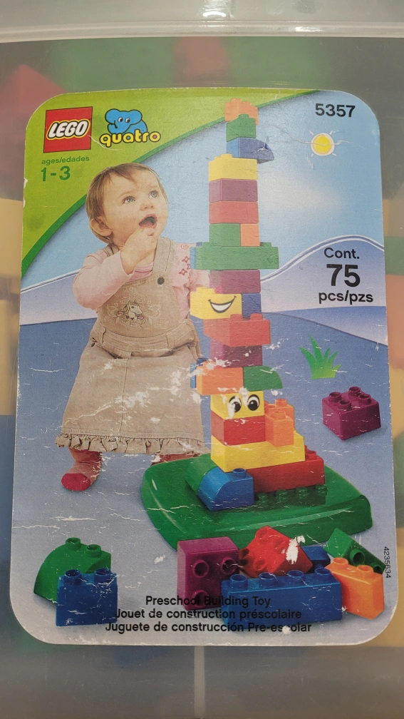 10LEGO Quatro 5357 building blocks for ages 1-3. Contains 75 pieces. Comes in original container.