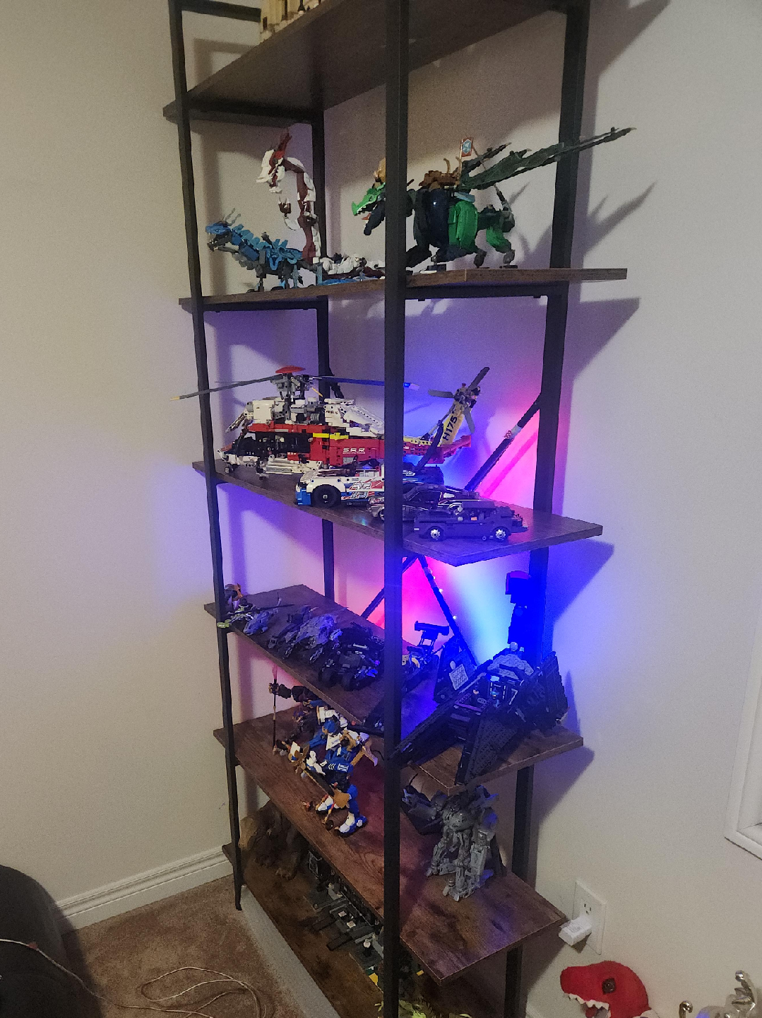 5I'm selling various LEGO sets displayed on a shelf. They include different themes and models. Great for collectors or LEGO enthusiasts!