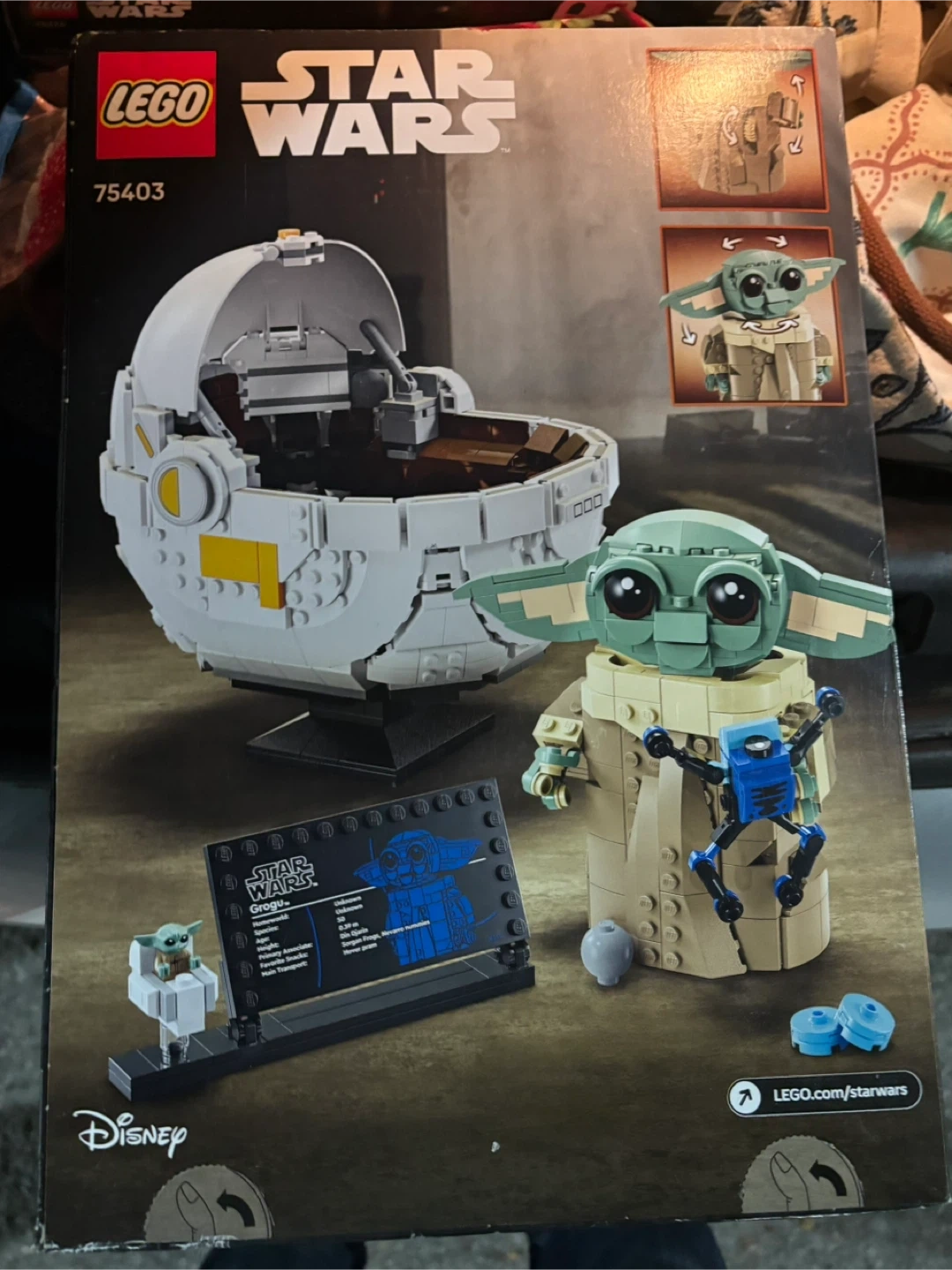 143Selling a LEGO Star Wars set, number 75403, featuring Grogu with the Hover Pram! This set has 1048 pieces and is suitable for ages 10+. It's a building toy and includes instructions. Perfect for any Star Wars or LEGO fan!