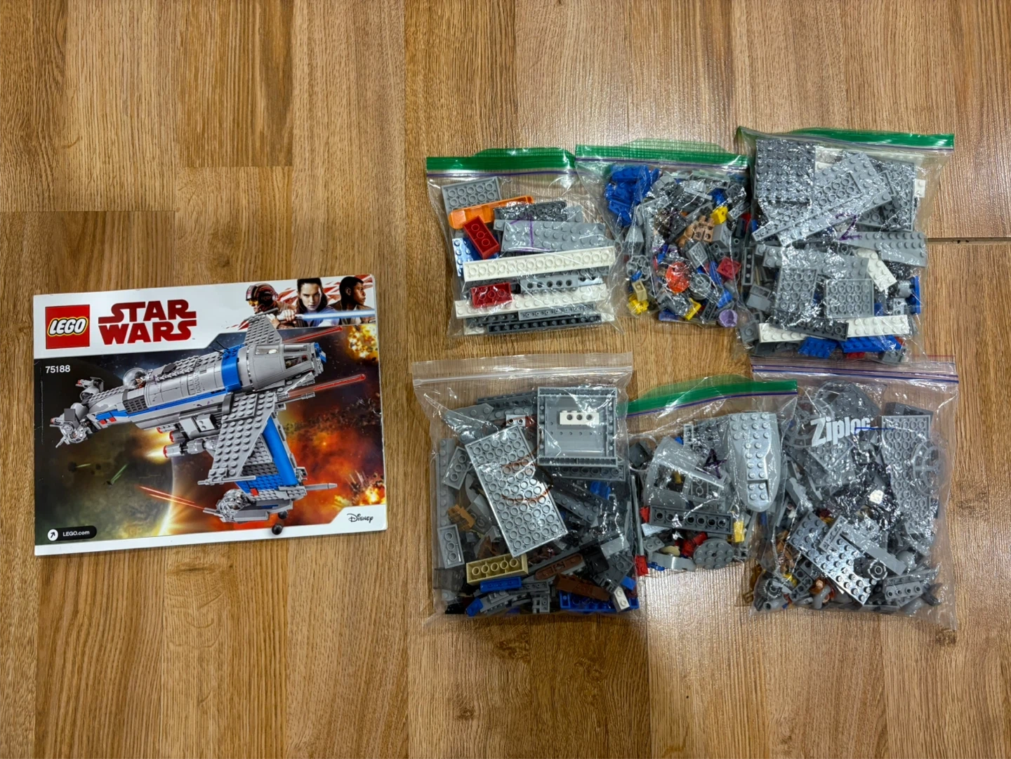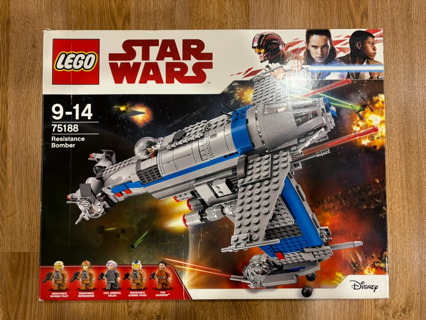 10LEGO Star Wars Resistance Bomber set (75188). 780 pieces and designed for ages 9-14. All pieces included, separated in bags, and comes with instruction book and box!