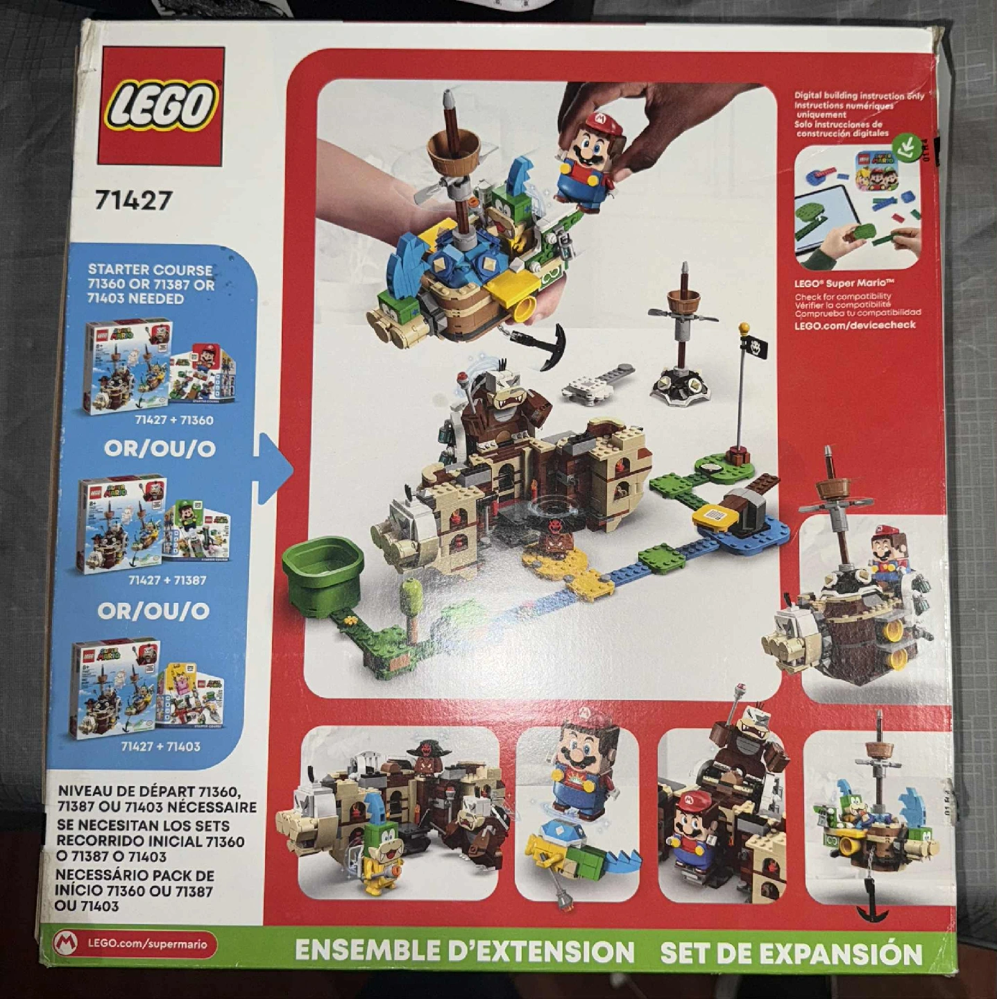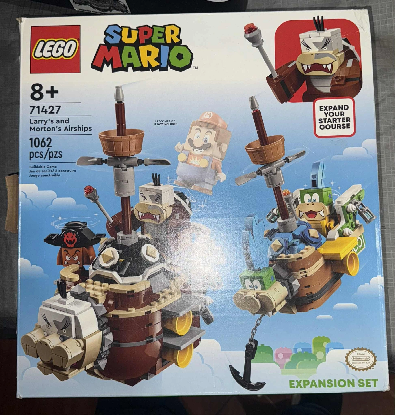 26Get ready for some Super Mario fun with this LEGO set! This is Larry's and Morton's Airships, set number 71427. It's an expansion set, so you'll need a starter course (71360, 71387, or 71403) to play. This set is recommended for ages 8 and up and includes 1062 pieces