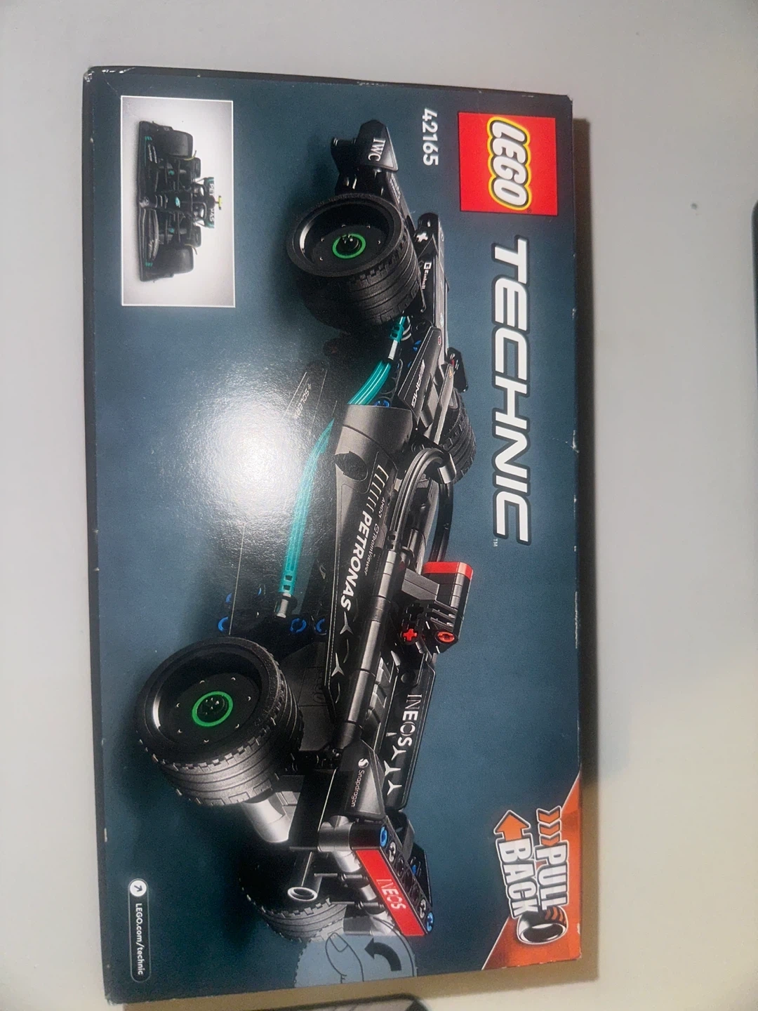 Selling a LEGO Technic Mercedes-AMG F1 W14 E Performance Pull-Back Race Car, set number 42165. It's brand new in box and ready to build! It's a pull-back race car