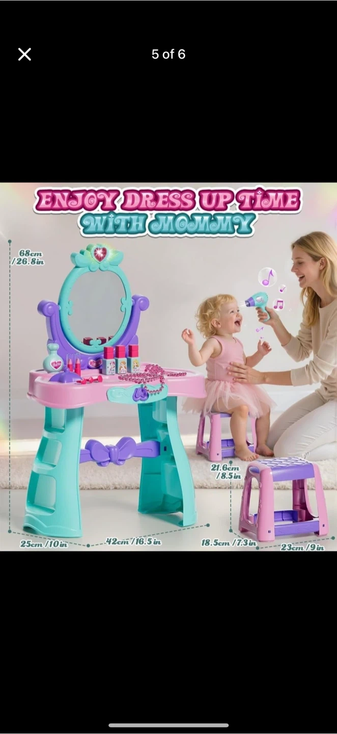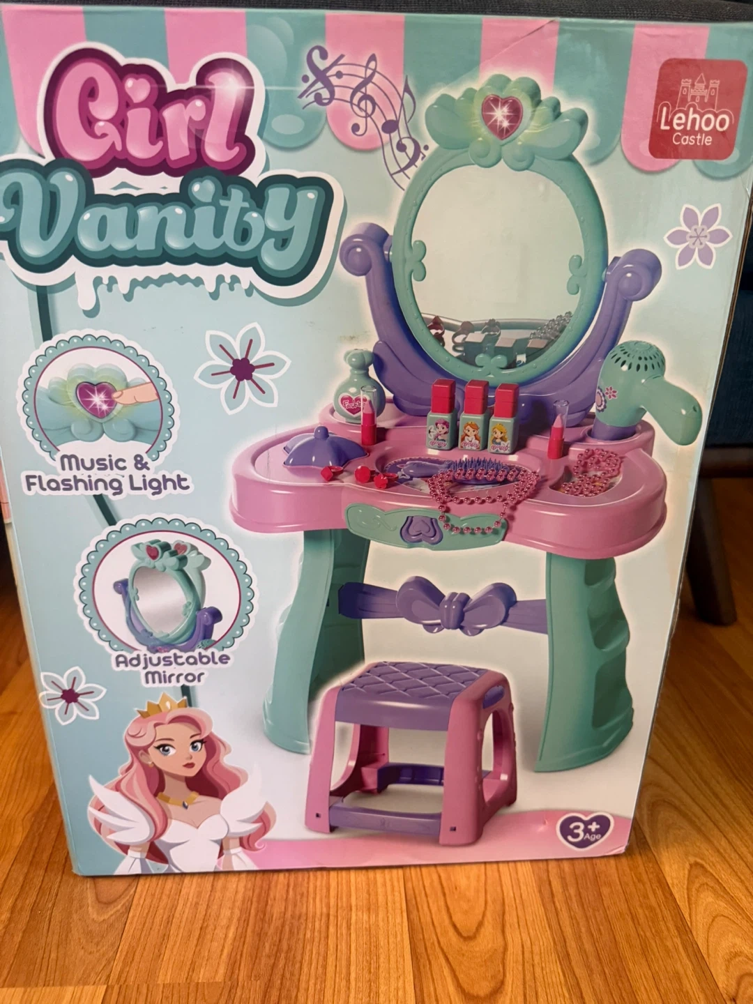 This Lehoo Castle kids vanity set is perfect for dress-up time! It includes a mirror, stool, and accessories, making it a great pretend play princess toy for 3-year-olds and up. The vanity also features lights and music for added fun