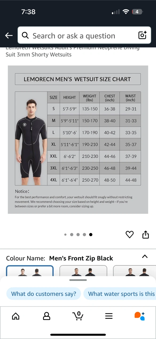 60Selling a Lemorecn men's wetsuit in size medium! It's black with a front zip. The material is 80% neoprene and 20% nylon. Perfect for water sports!
