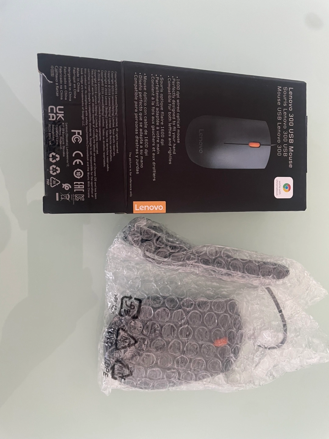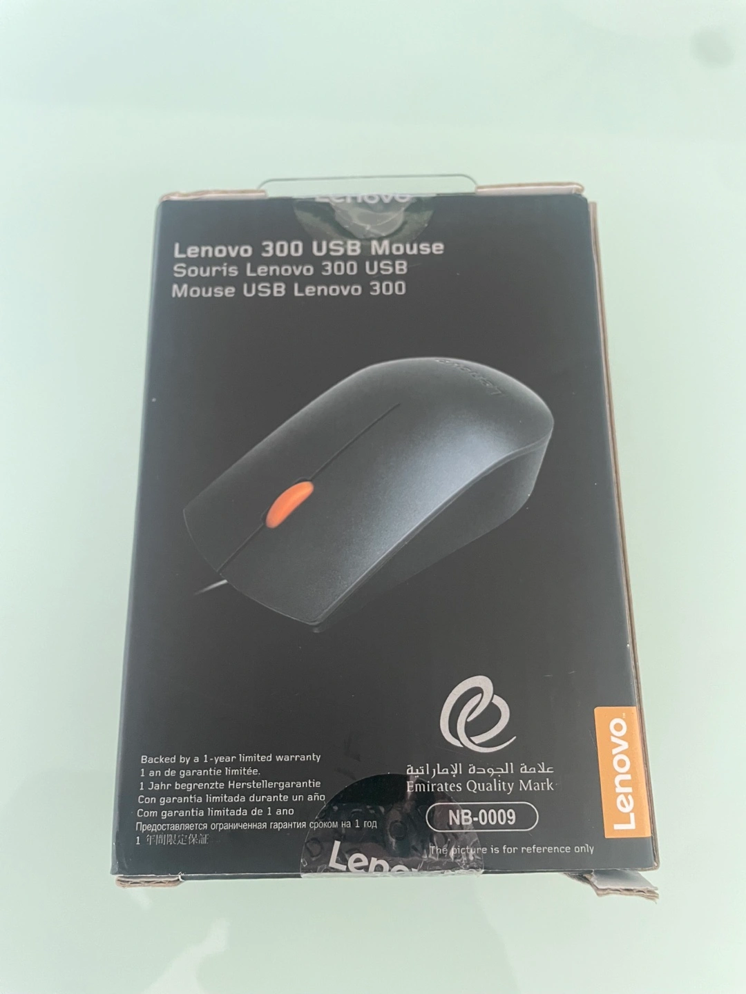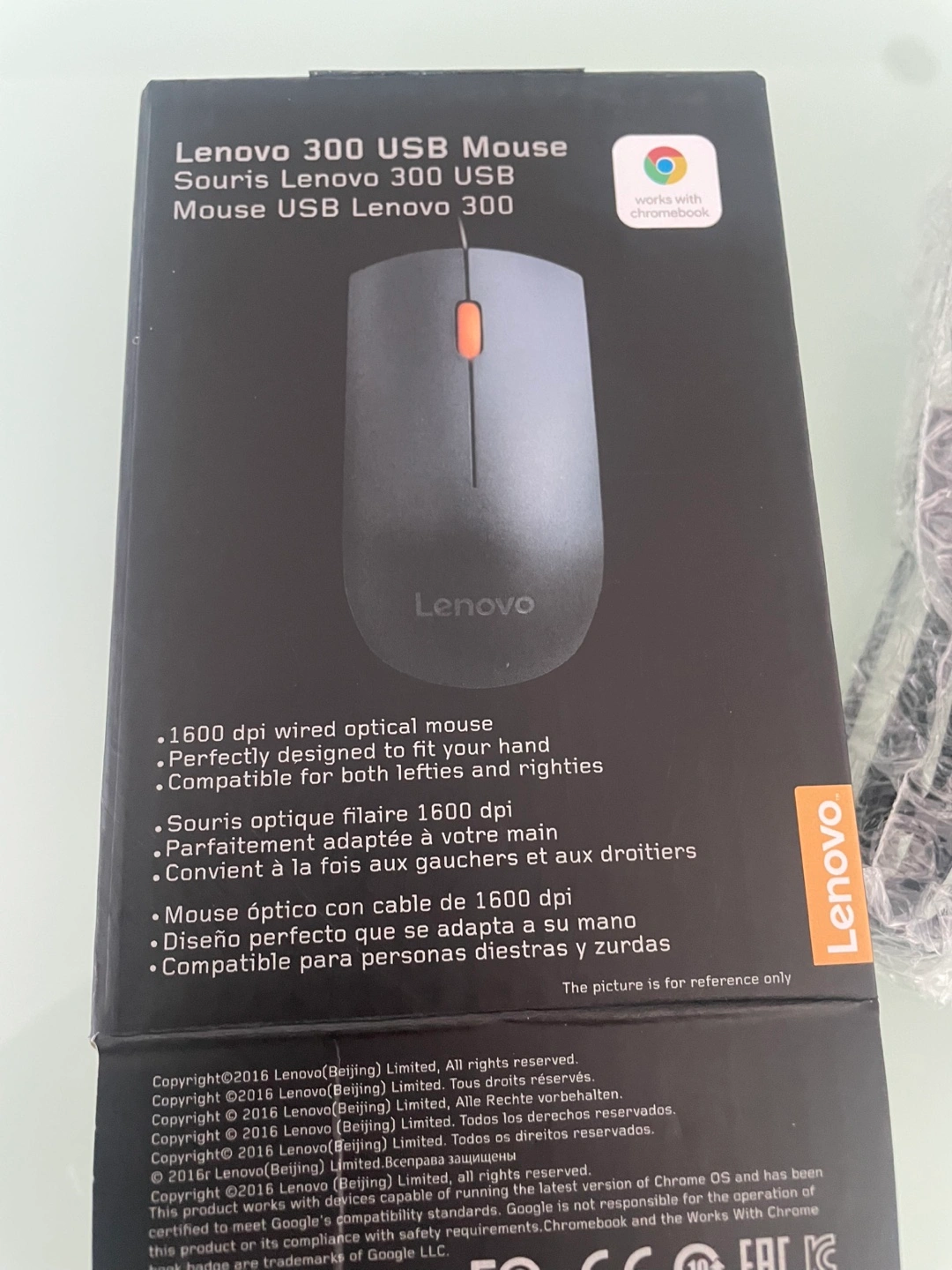I'm selling a brand new Lenovo 300 USB Mouse! It's perfectly designed to fit your hand and is compatible for both lefties and righties. It has a 1600 dpi wired optical mouse. The box is included!