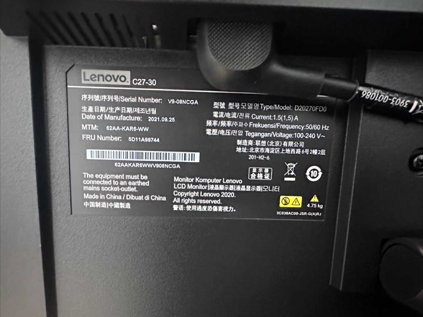 Brand New Monitor. Lenovo ThinkVision C27-30 27" Full HD WLED LCD Monitor - 16:9 - Raven Black Sells for $230 + Tax.