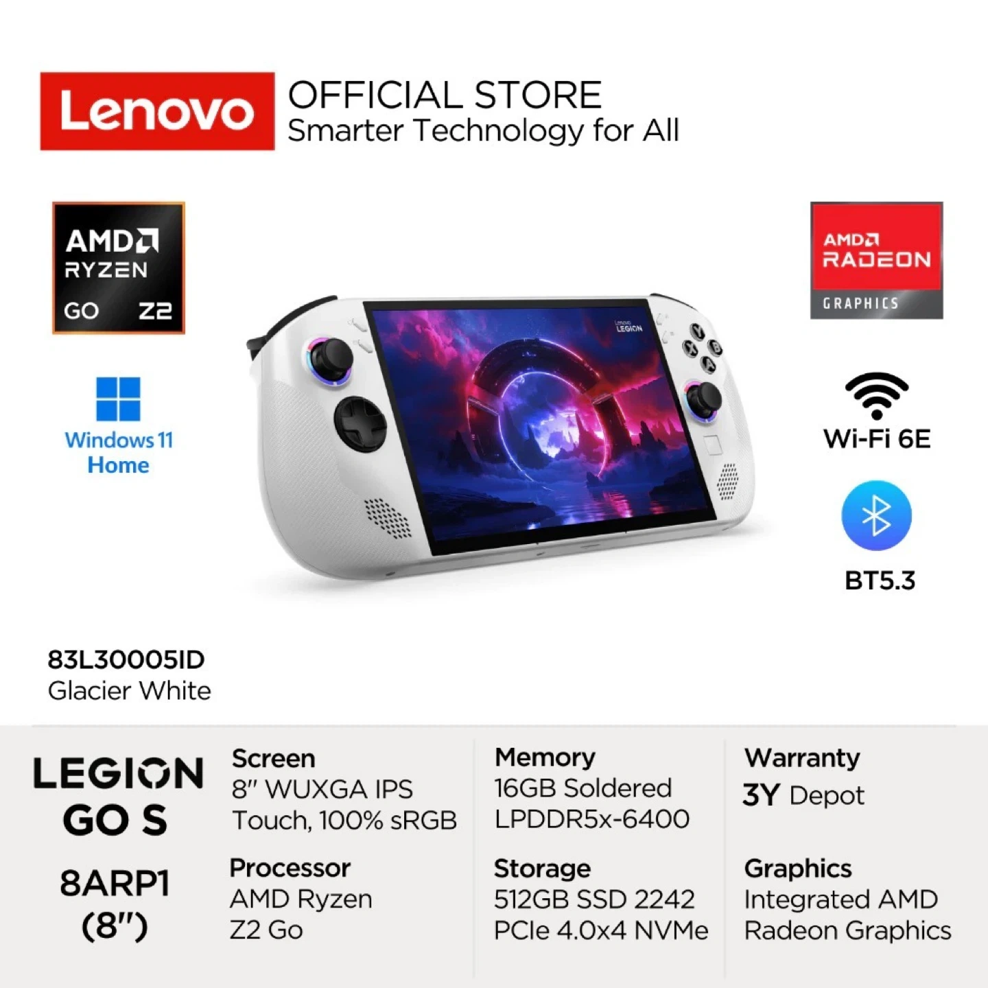 15Selling a Lenovo Legion Go in Glacier White! It comes with the original box. Key specs: - AMD Ryzen Z2 Go processor - 32GB RAM - 1TB SSD storage - Integrated GPU - Windows 11 Home OS