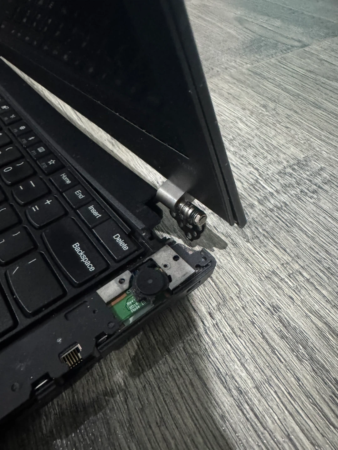 10Laptop works completely fine but the only problem is a piece broke which lead the laptop to look like this I bought it originally for $450. You can get it fixed easily. A charger is included. When clicking on the keyboard you may have to press hard but when you fix it this problem will go away. PRICE NEGOTIABLE