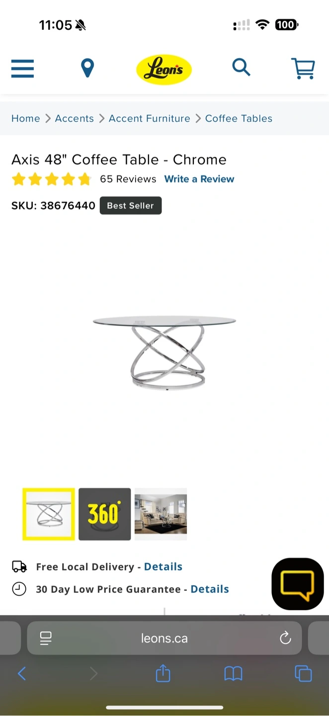 60Selling a Leon's Axis 48" Coffee Table in Chrome It's a best seller!