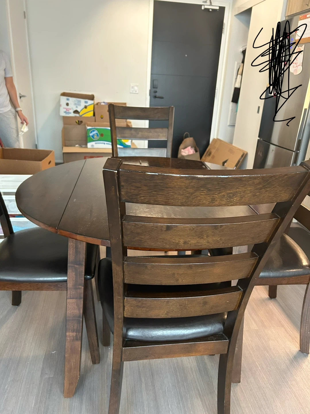10Selling a dark wood dining table that comes with four chairs. It's in good condition and perfect for a small dining area or kitchen.bought for $850 selling for $350