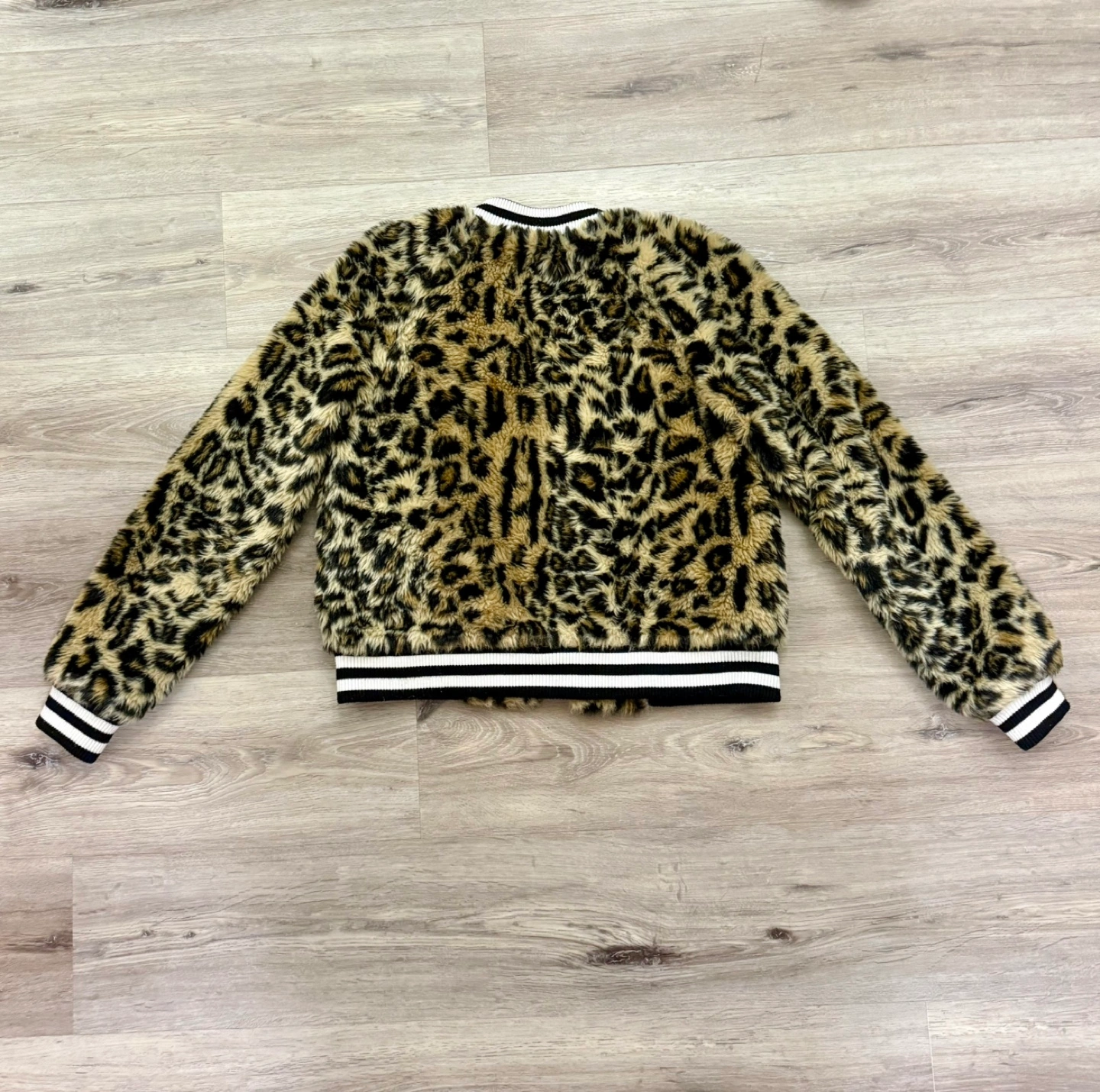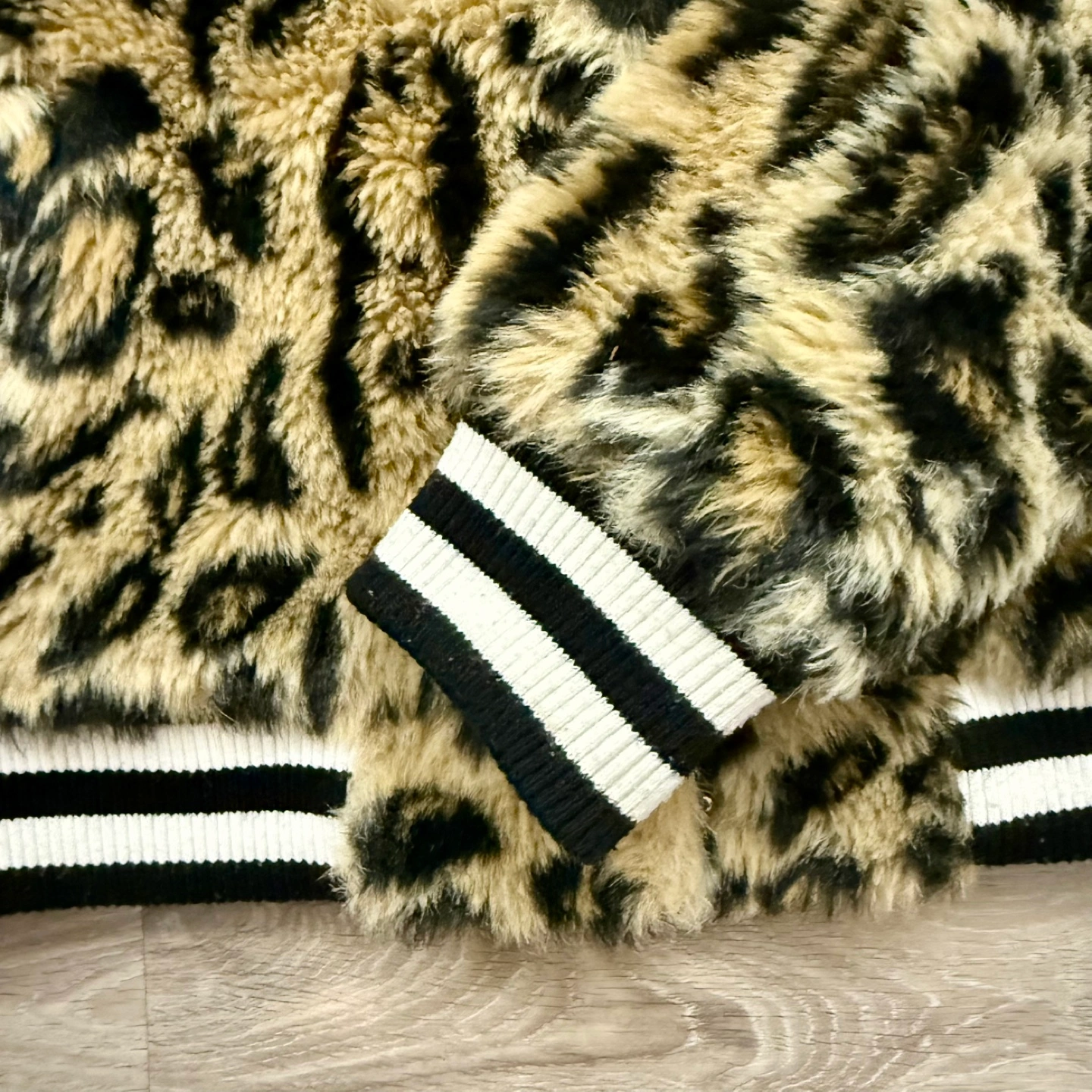 Leopard Print Faux Fur Bomber Jacket - Size Medium