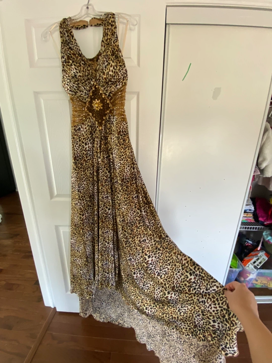 10Selling a beautiful halter maxi dress with a striking leopard print! The dress features a unique design with a beaded embellishment at the waist, adding a touch of elegance. It's perfect for a special occasion or a night out. The dress is in great condition and ready for a new home!