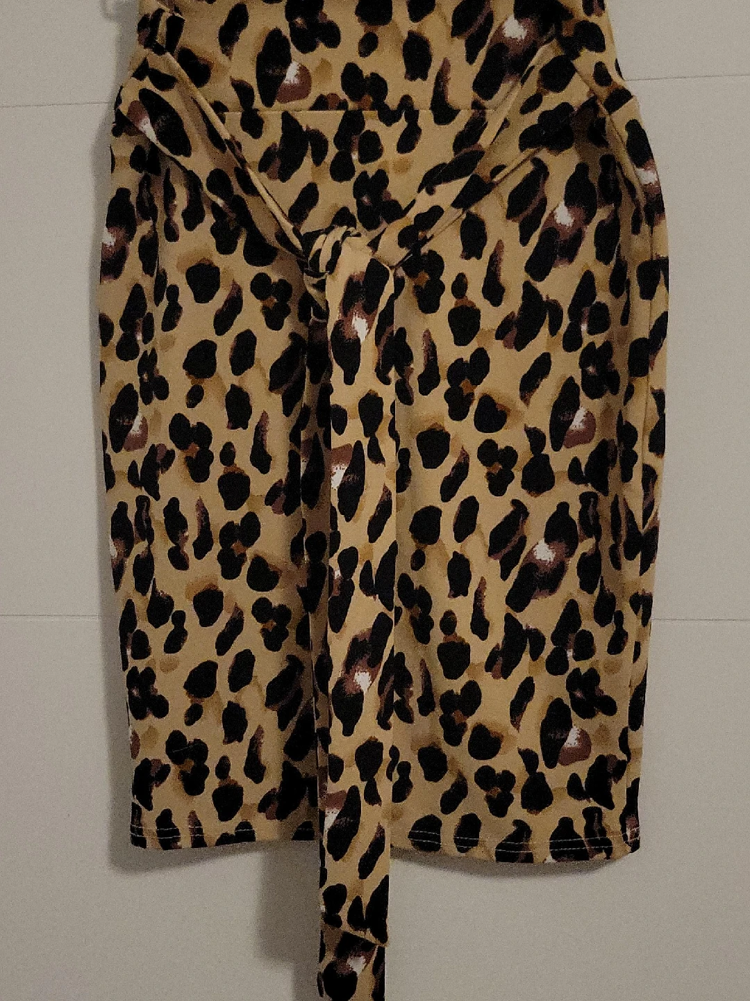 65Cute leopard print skirt! It's in great condition and ready for a new home. The skirt features a stylish tie detail and a comfortable elastic waistband. Perfect for adding a touch of fun to your wardrobe!