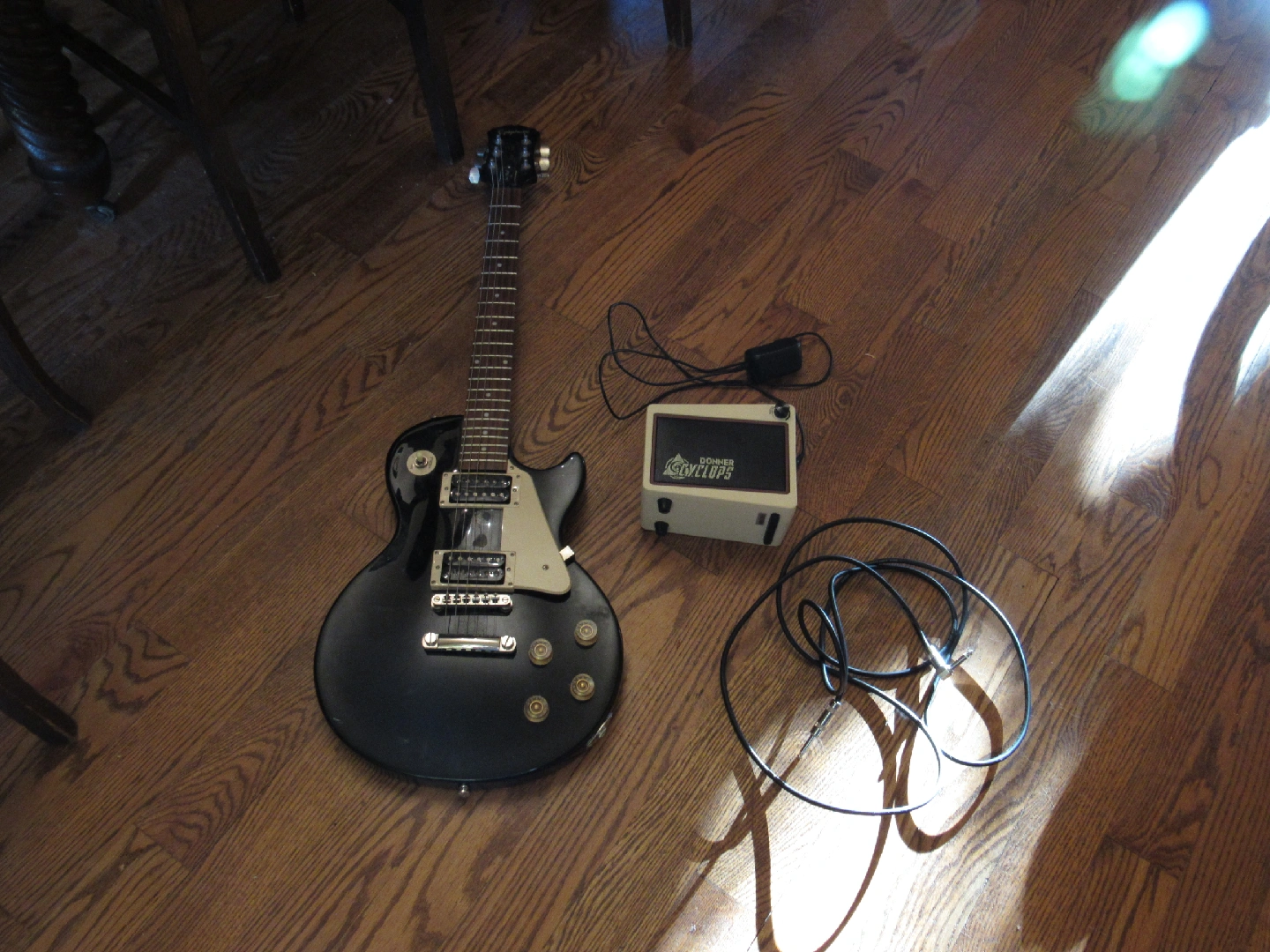 Epiphone Les Paul 100 electric guitar with a very versatile mini amp by Donner that has a ton of different sounds. The amp is pretty new, barely used, comes with a built in tuner and lots of amp models whether you want a clean, fuzz, or drive sound. The guitar has noticable nicks and scratches but has an amazing sound and strings that are good for beginners who can't handle thicker tougher strings. Comes with the AC adapter for the amp and a cable to connect the 2, all for the price listed. I'm in the Beaches, Leslieville, and Danforth area. If you want to meet up at a station or at my house I have no problem with that. I can also throw in the gig bag with some picks for an extra 15