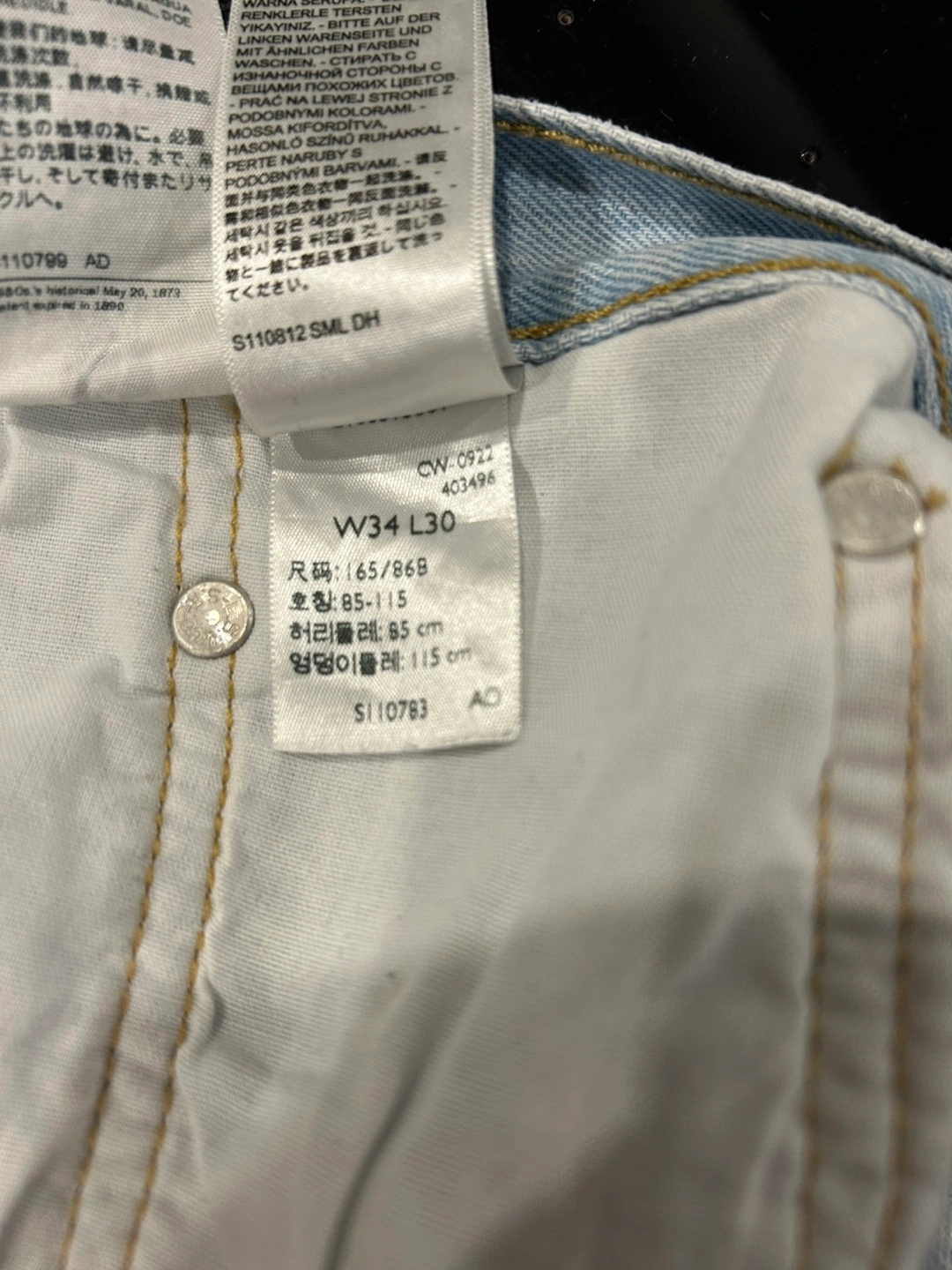 Levi's 501 jeans. Light wash denim. Button fly. Size W34 L30. Excellent condition.