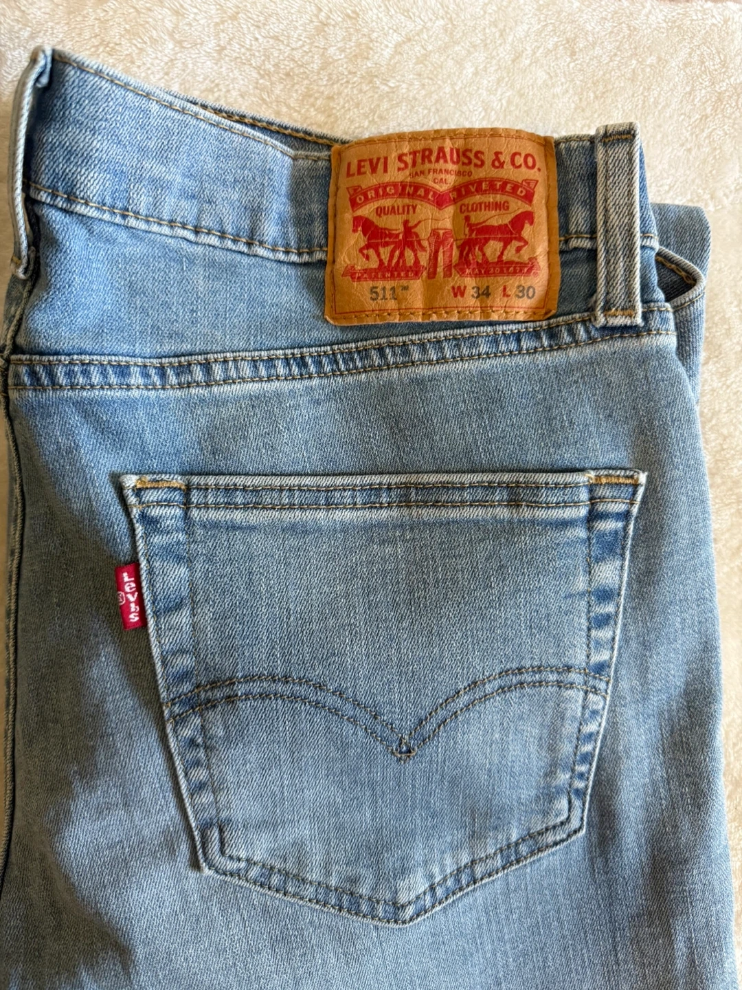 46Selling a pair of Levi's 511 jeans in size W34 L30. They're in great shape and ready for a new home! The classic Levi's style and fit make them a versatile addition to any wardrobe Used once!