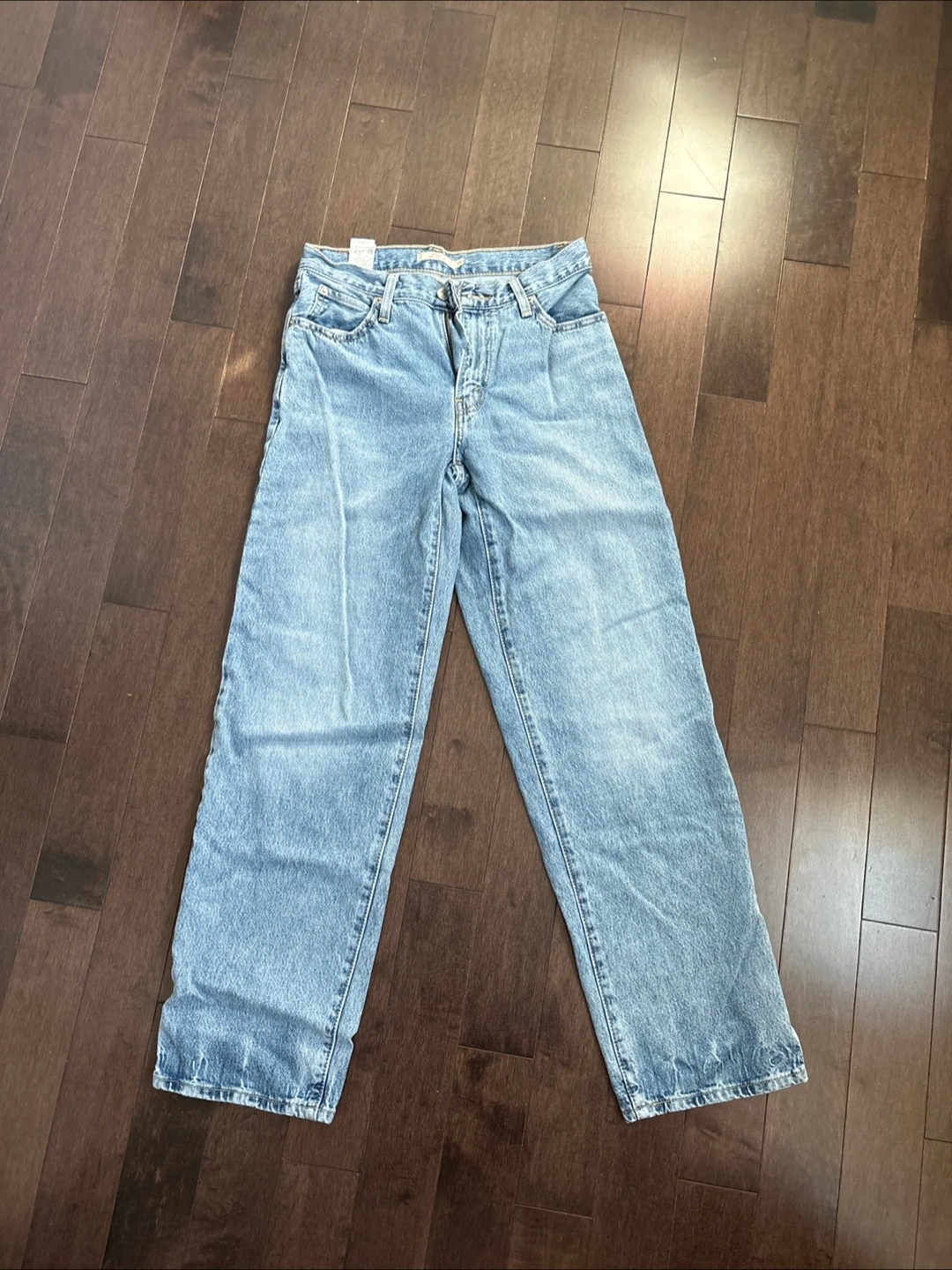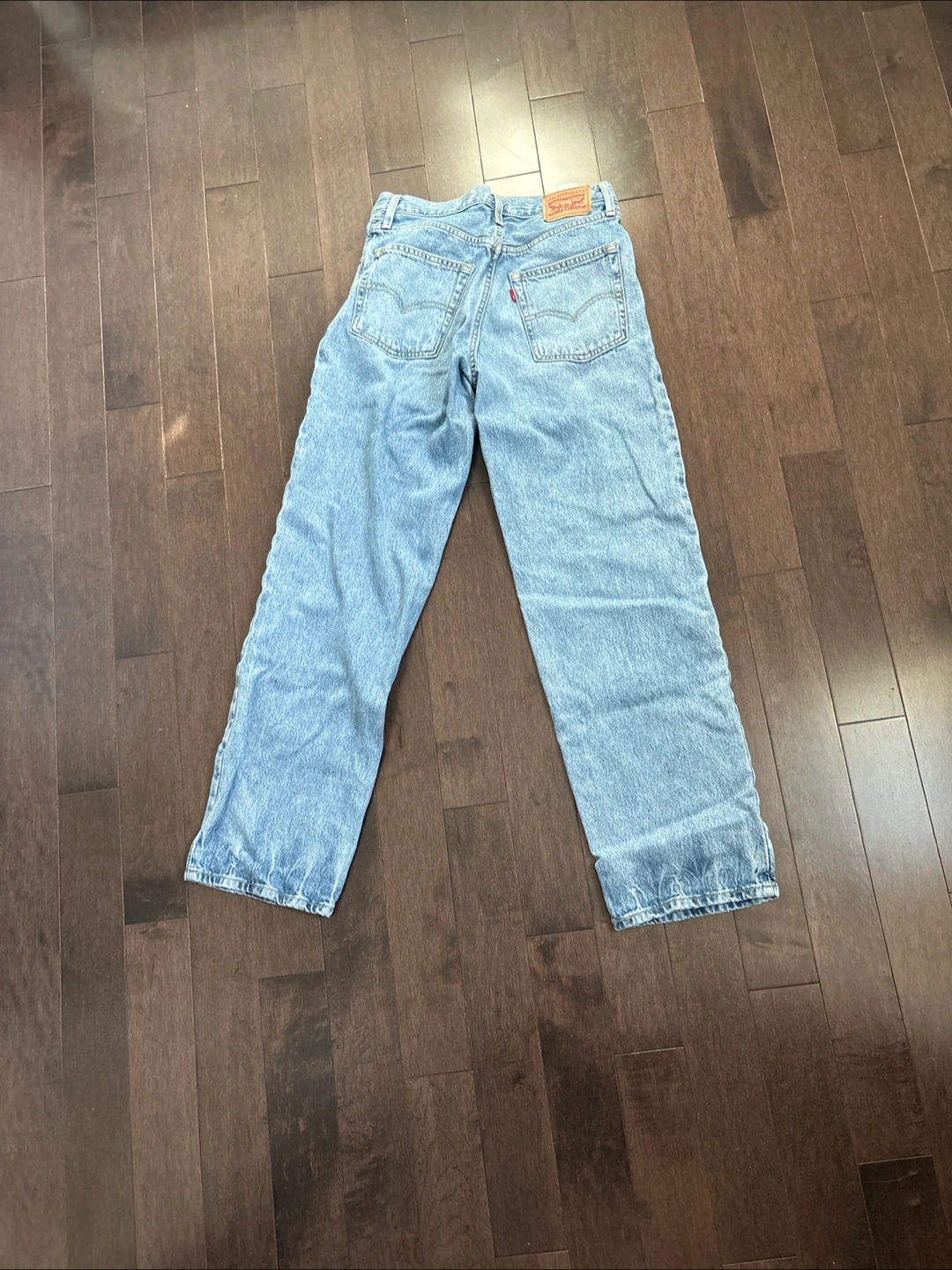 Selling a pair of Levi's ‘94 baggy jeans in size 26. The jeans are a light wash denim. They are in good condition and ready for a new home! Worn once, brand new condition.