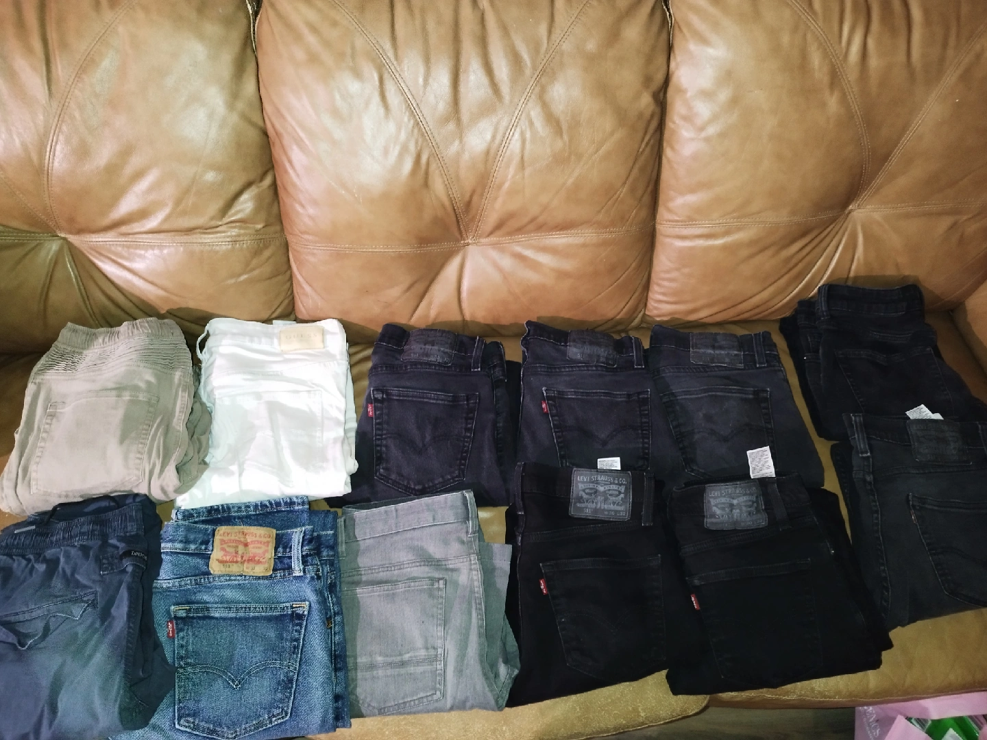 Selling a bundle of Levi's jeans in black! one pair of Calvin Klein, guess and others. They're in great condition and ready for a new home. Perfect for everyday wear! W30/31 L32 Total of 15 pairs of pants + some shorts