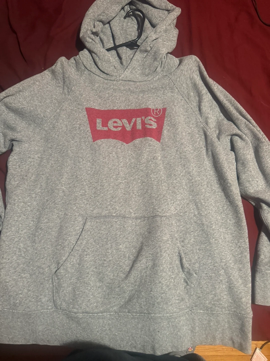 83Selling a Levi's hoodie in a light gray colour! It's a size large and features the classic Levi's logo on the front. Perfect for staying cozy on cooler days!