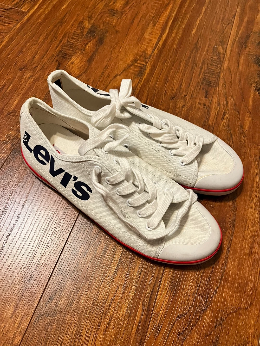 Brand new, never worn men’s sneakers from Levi’s. • Classic white design with red details • Comfortable canvas material • Size EU 43 / US 10 Perfect for casual outfits and everyday wear.