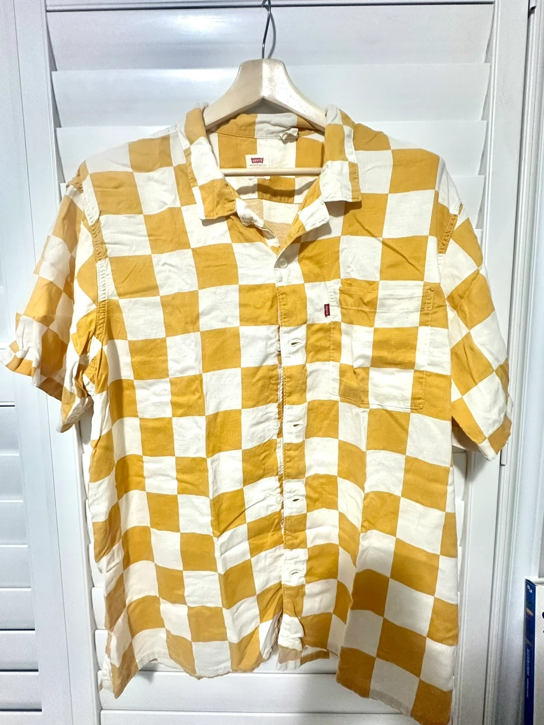 Levi's Relaxed Fit Shirt - Yellow and White Checkered - XL