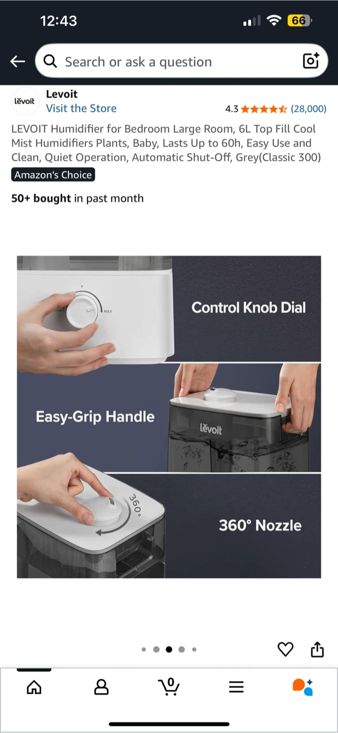 π¨ PART OF A MOVE OUT SALE π¨ Selling a used LEVOIT Classic 300 Lite Ultrasonic Cool Mist Humidifier! It's in great condition and comes with the original box. It's a 6-liter humidifier that runs for up to 60 hours. It's perfect for bedrooms, plants, and babies. It has an easy-grip handle and a 360Β° nozzle for easy use Paid $100 for it. Receipt at the end It comes with a gallon of distilled water. Itβs all packed up and ready for a new home. Cash only please. π to product: https://a.co/d/biX070q