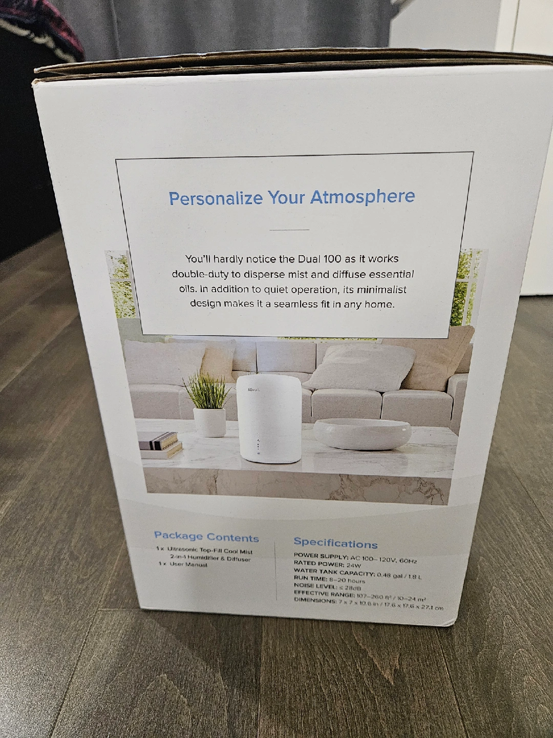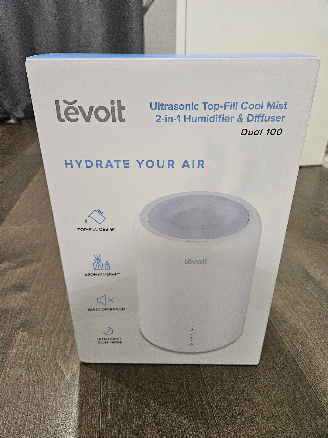 65I'm selling a Levoit Dual 100 Ultrasonic Top-Fill Cool Mist 2-in-1 Humidifier & Diffuser! The humidifier has a top-fill design, aromatherapy capabilities, and quiet operation. It also features an intelligent sleep mode. The dimensions are 7 x 7 x 10.6 in / 17.6 x 17.6 x 27.1 cm
