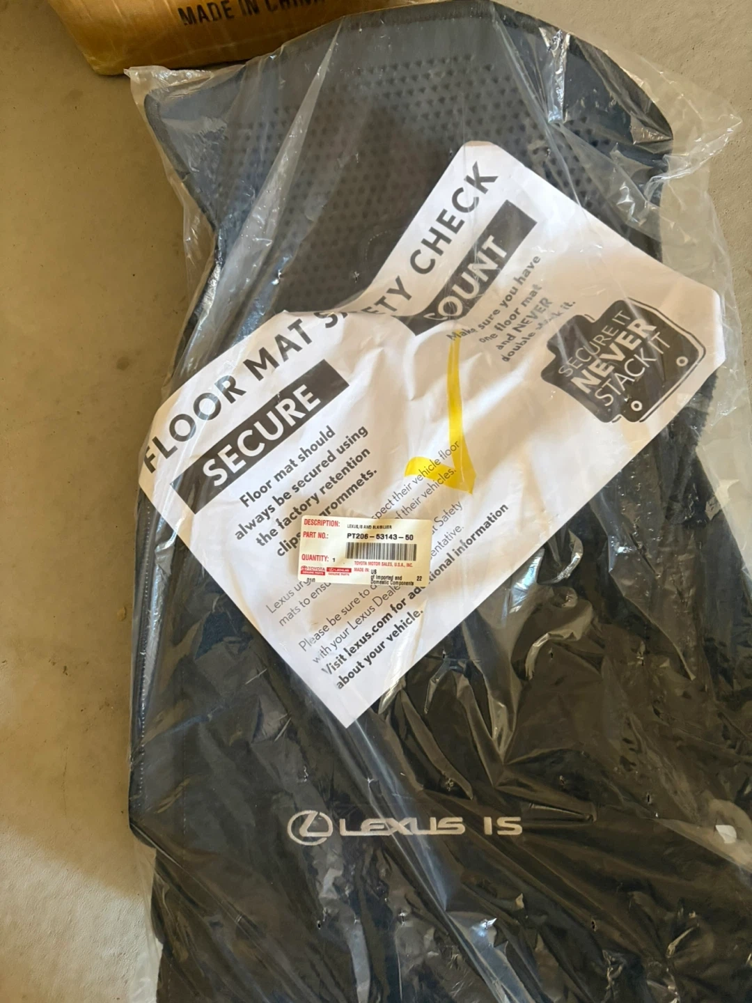 75Brand new Lexus IS floor mats, still in the original packaging! These floor mats are designed to securely fit your Lexus IS with the factory retention clips and grommets.