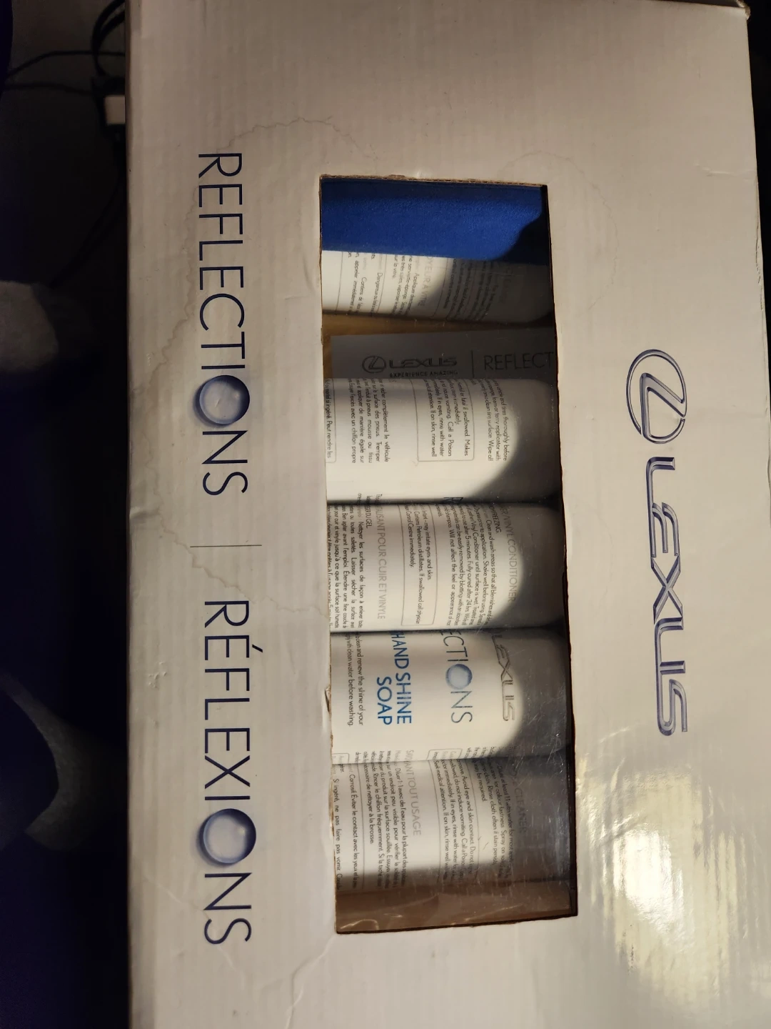 59Selling a Lexus Reflections car care kit. The box includes hand shine soap and leather vinyl conditioner. Keep your car looking its best with this set!