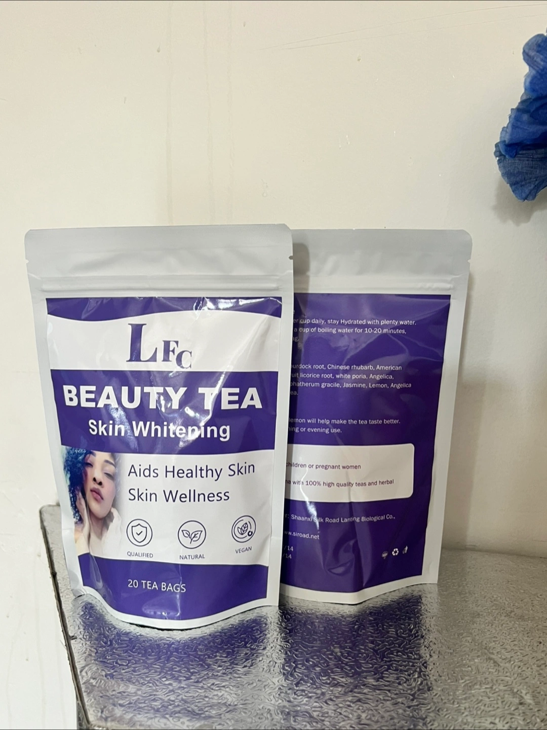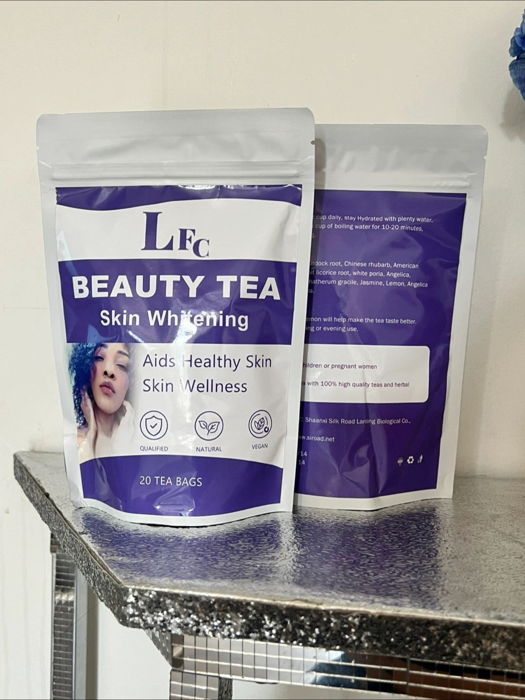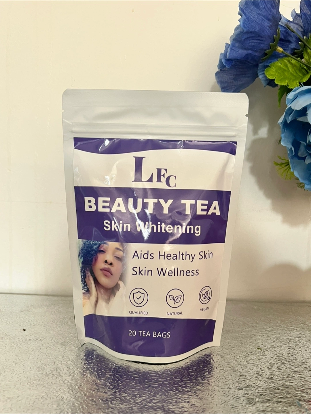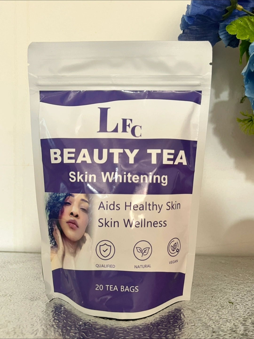 J'ai des sachet de LFC Beauty Tea Skin Whitening. Il contient 20 sachets de thé qui aident à la santé de la peau et au bien-être. C'est un produit qualifié, naturel et végétalien