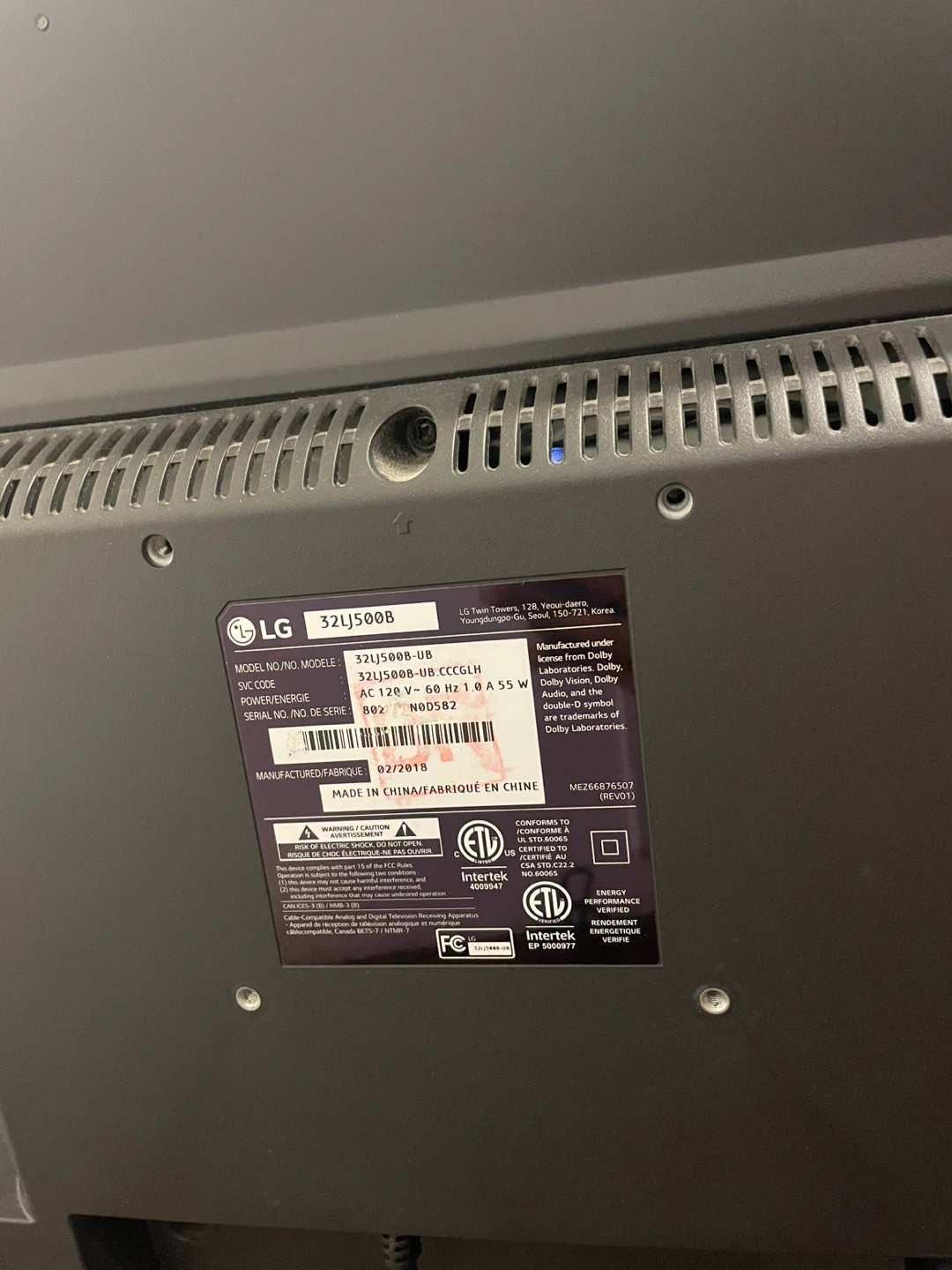 Selling a used LG 32LJ500B 32-inch LED TV. Has cables but no control It's in good working condition and ready for a new home!