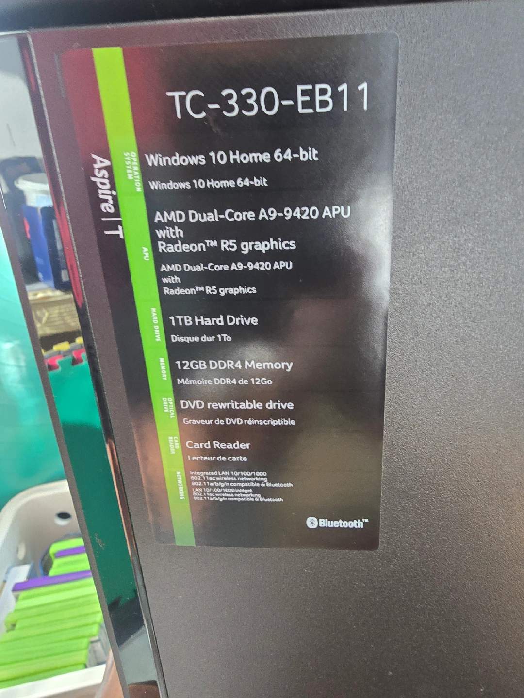 Selling an LG 32MP58HQ-P 32-inch monitor along with an Acer Aspire TC-330-EB11 desktop PC. The monitor was manufactured in February 2019. The desktop PC features Windows 10 Home 64-bit, an AMD Dual-Core A9-9420 APU with Radeon R5 graphics, 1TB hard drive, 12GB DDR4 memory, and a DVD rewritable drive