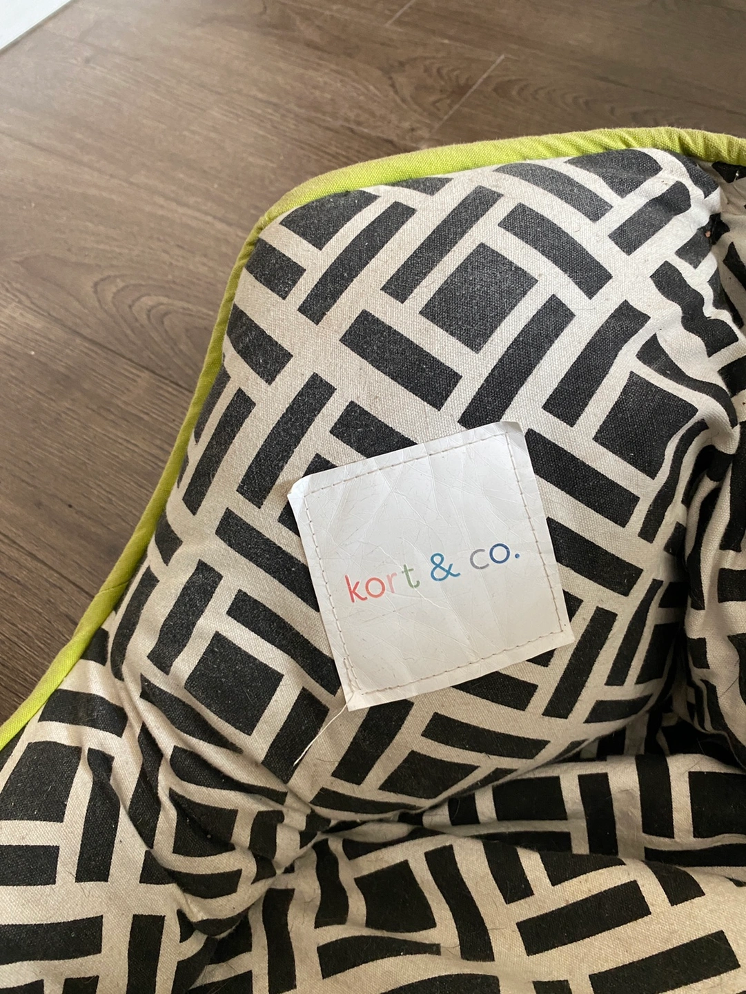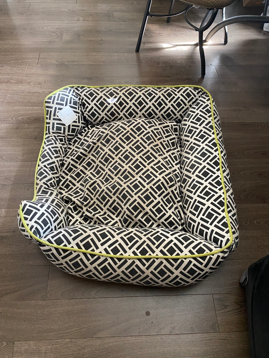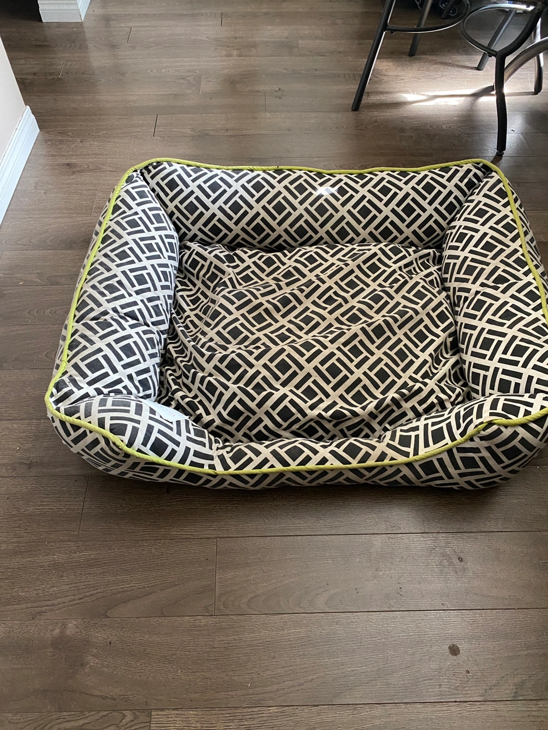 Black and green geometric print dog bed with green trim. 36 x 29 inches. Needs a good washing Pick up Delton area
