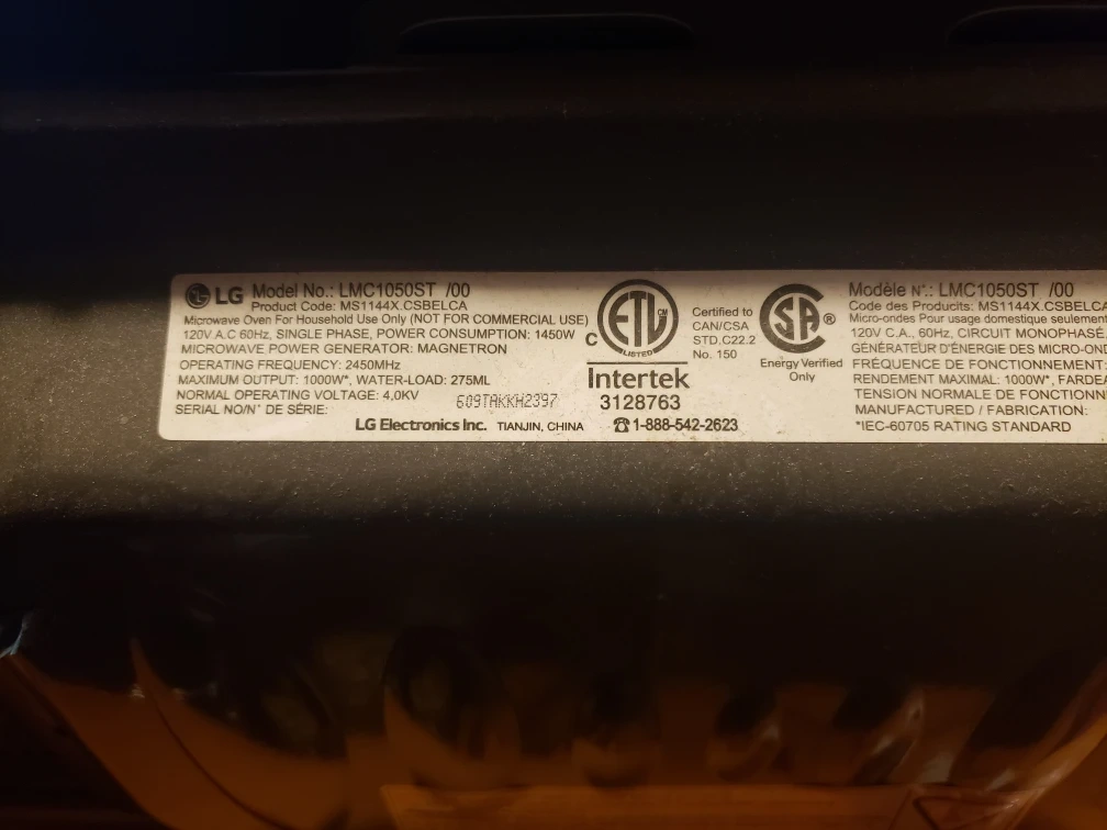 Selling an LG microwave oven, model number LMC1050ST. It's in good working condition and ready.