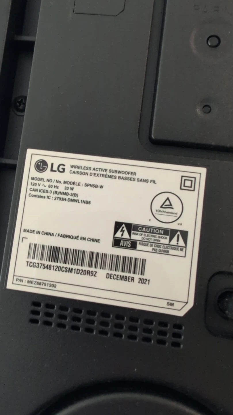 60Selling an LG wireless active subwoofer, model number SPN5B-W. It's in great condition and ready to boost your sound system. Contains ICES-3(B)/NMB-3(B).
