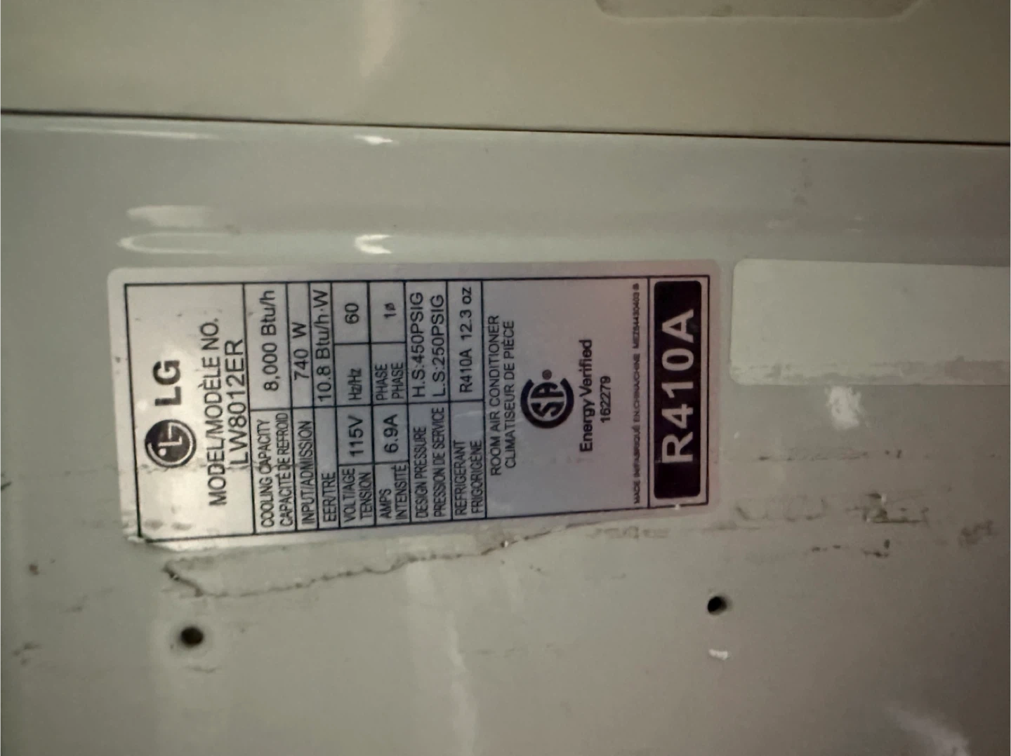 18Selling an LG window air conditioner, model LW80T2ER. It has a cooling capacity of 8,000 BTU/h and operates at 115V. Perfect for keeping a room cool during the summer months!