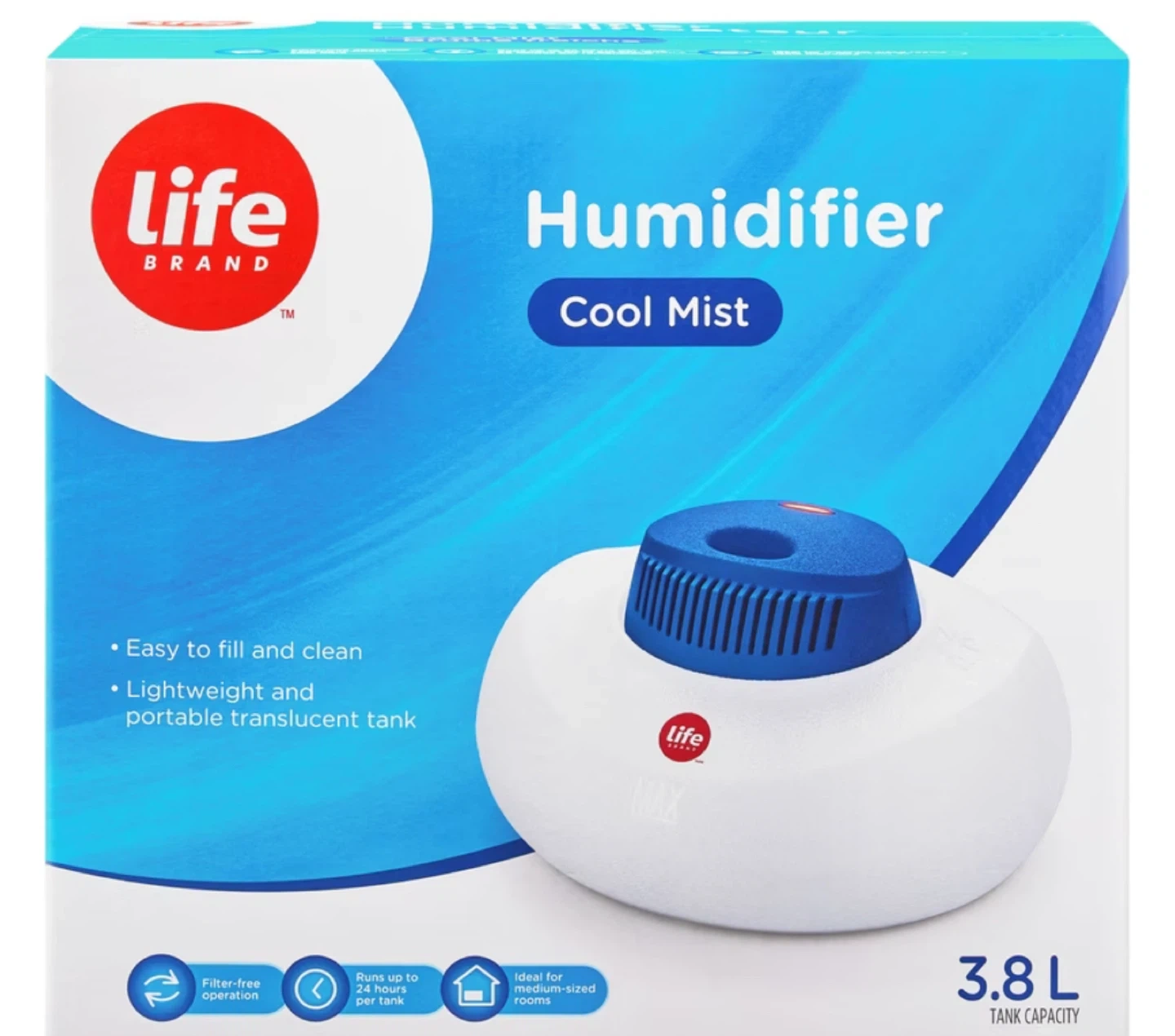 Keep your space comfortable with this Life Brand Cool Mist Humidifier! It's easy to fill and clean, plus the translucent tank is lightweight and portable. It's designed for medium-sized rooms and has a 3.8L tank capacity. Enjoy filter-free operation and up to 24 hours of use per tank!