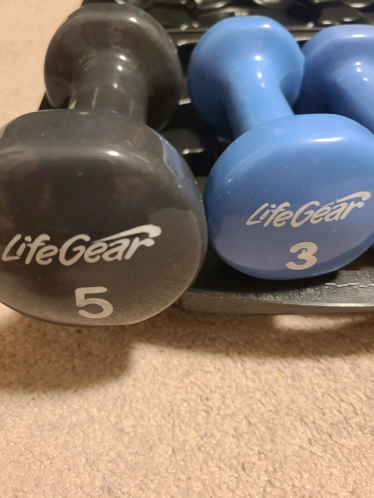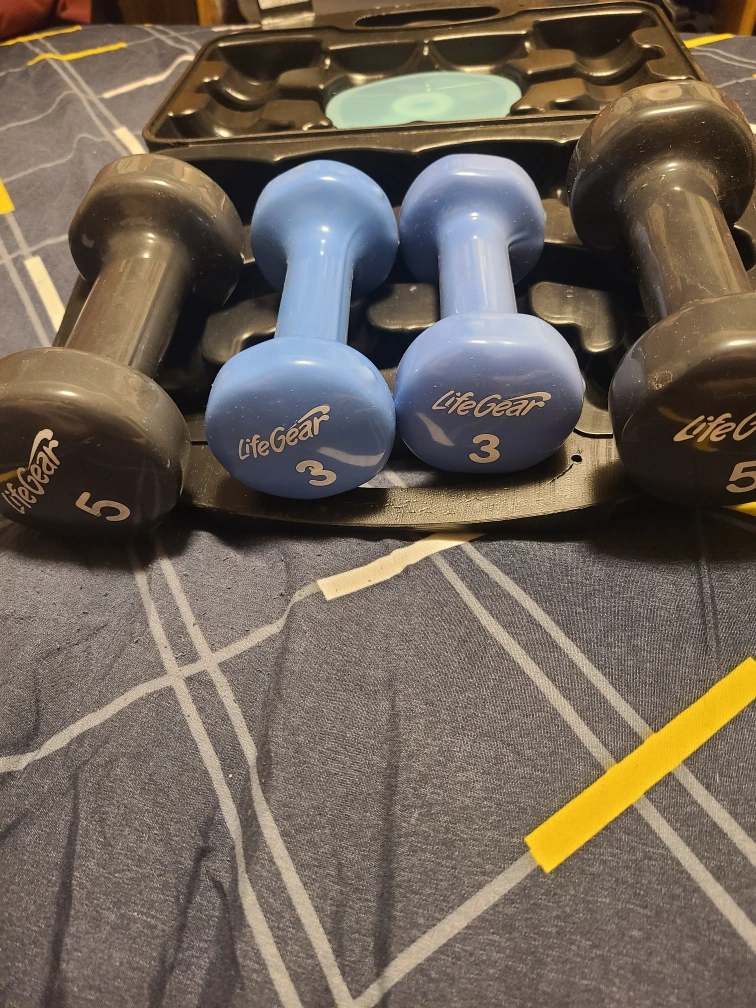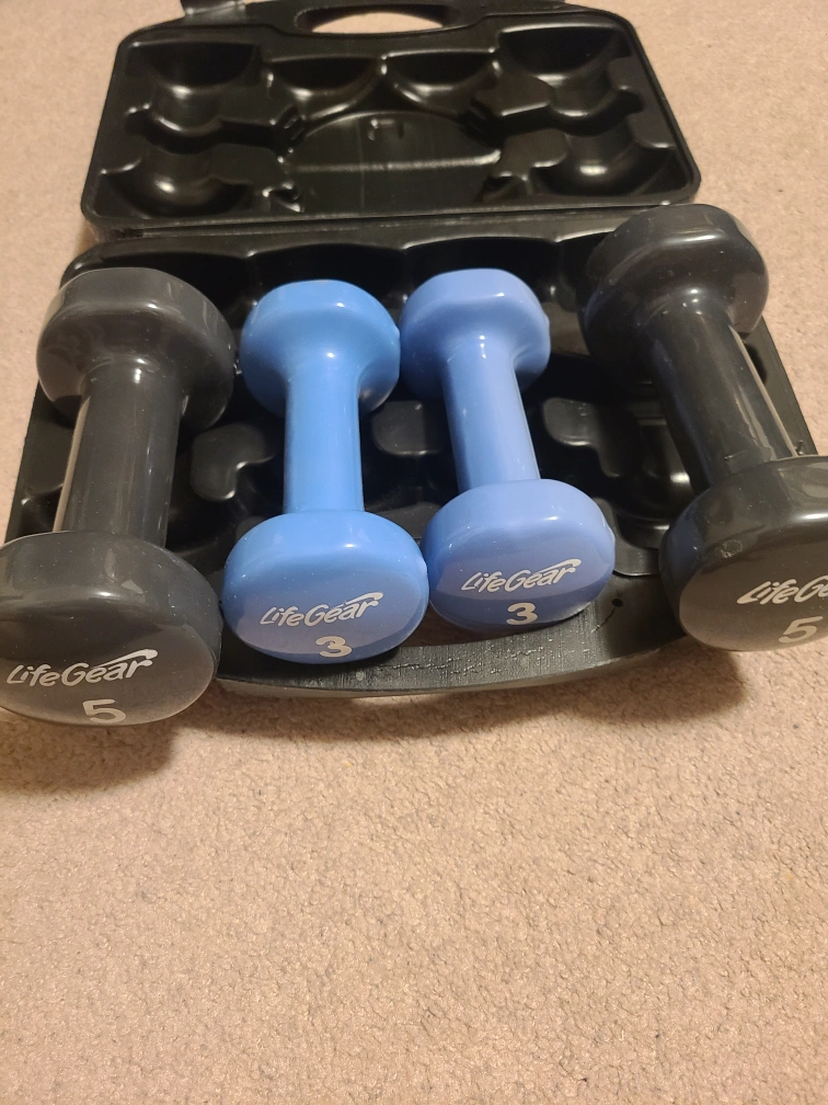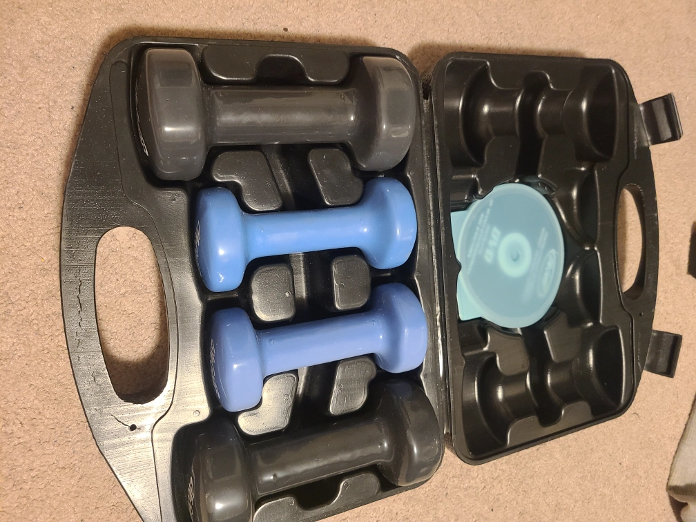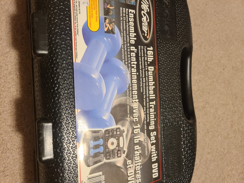Get your workout on with this Life Gear 16lb dumbbell training set! It comes with a DVD to help guide your exercises. The set includes a variety of dumbbells in different weights, perfect for all fitness levels. The dumbbells are neatly organized in a convenient carrying case, making it easy to store and transport.