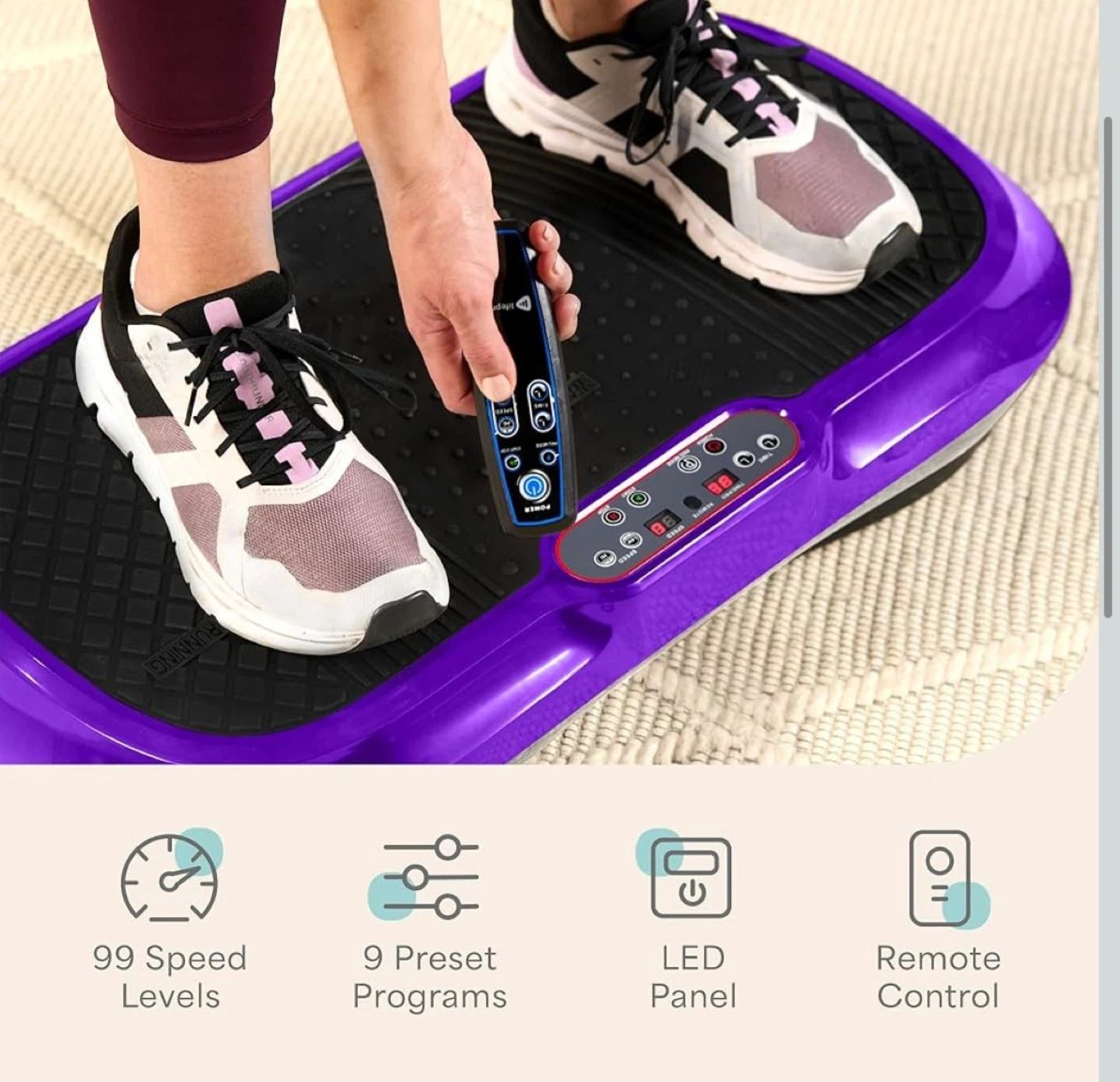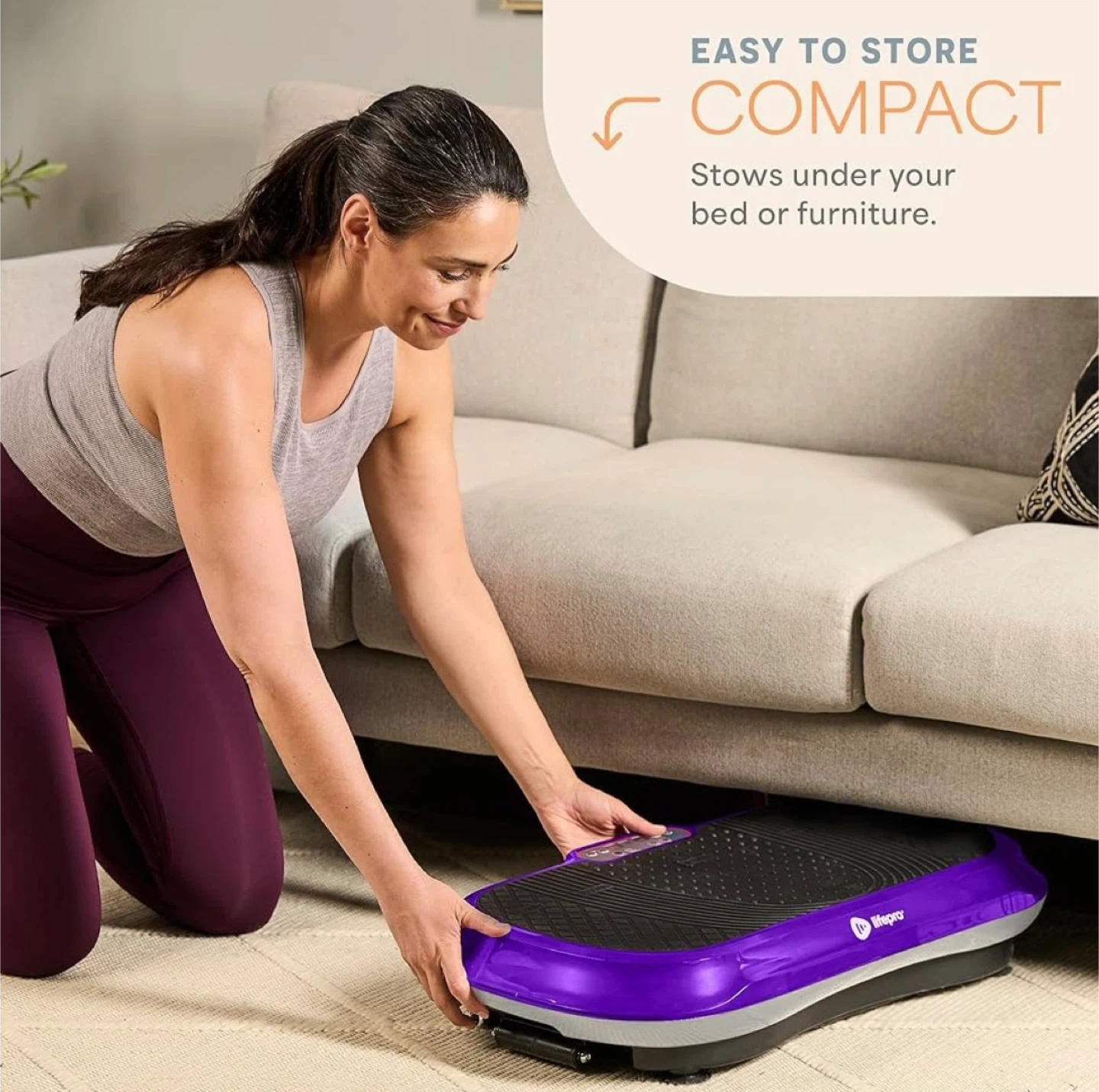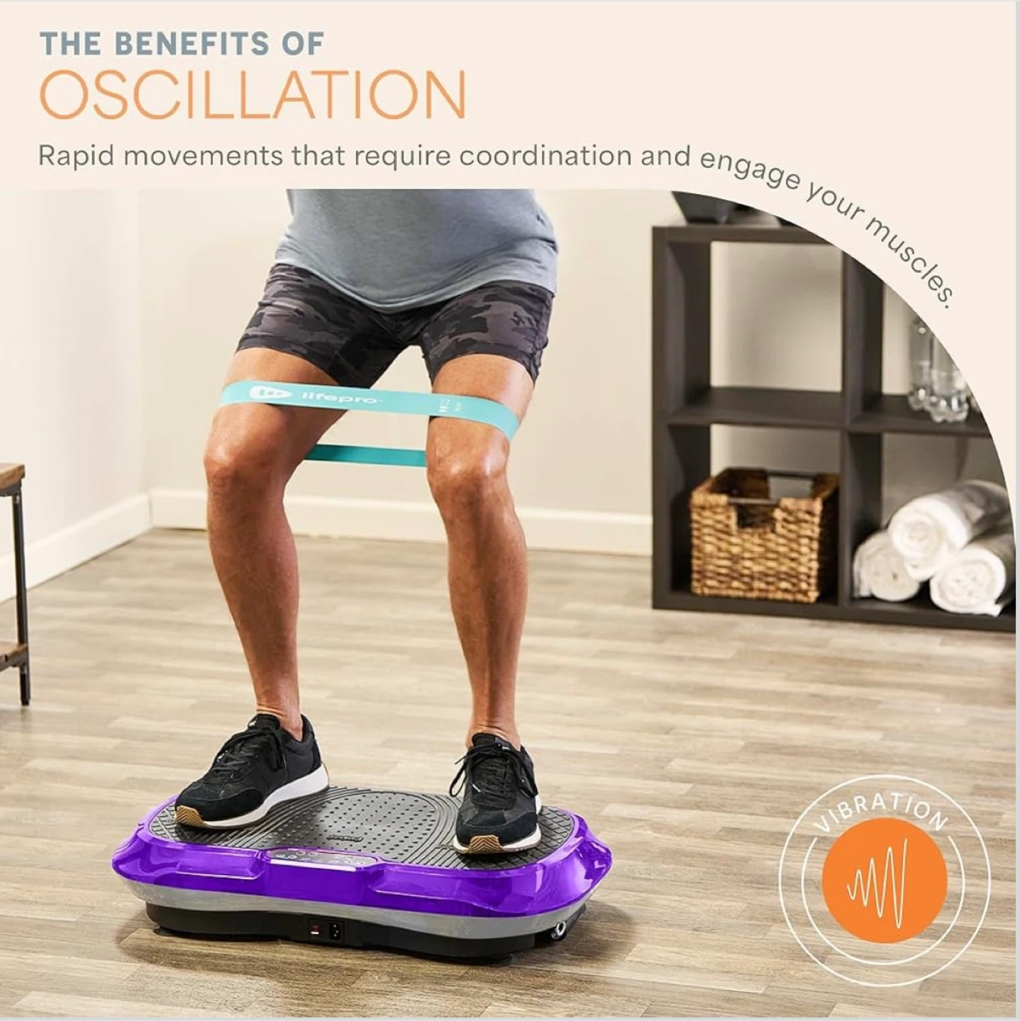 18Get ready to shake things up with this LifePro vibration plate! It's a fun way to add a little extra to your workout routine. It comes with: - 2 loop bands - 4 resistance bands - Remote control Dimensions: 27" x 15" x 6" Weight capacity: 330lb
