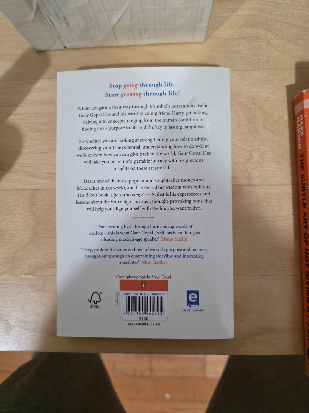 Selling "Life's Amazing Secrets: How to Find Balance and Purpose in Your Life" by Gaur Gopal Das. It's a self-help book that offers insights on navigating life and finding purpose. Perfect for anyone looking for a little guidance!
