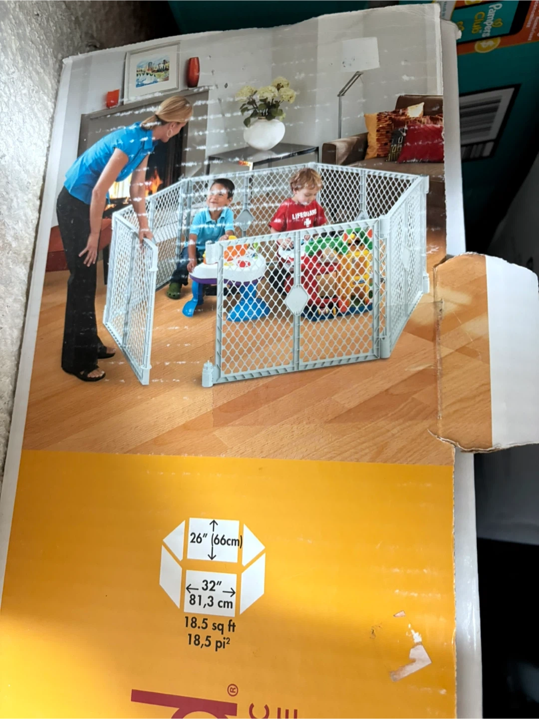 44Selling a Lifespan Kids playpen or safety gate. It's in great condition and comes with the box! The playpen is 26 inches (66cm) high and each panel is 32 inches (81.3cm) wide, covering 18.5 square feet (18.5 pi²). It can be used as a play area for kids or as a safety gate to keep them away from certain areas