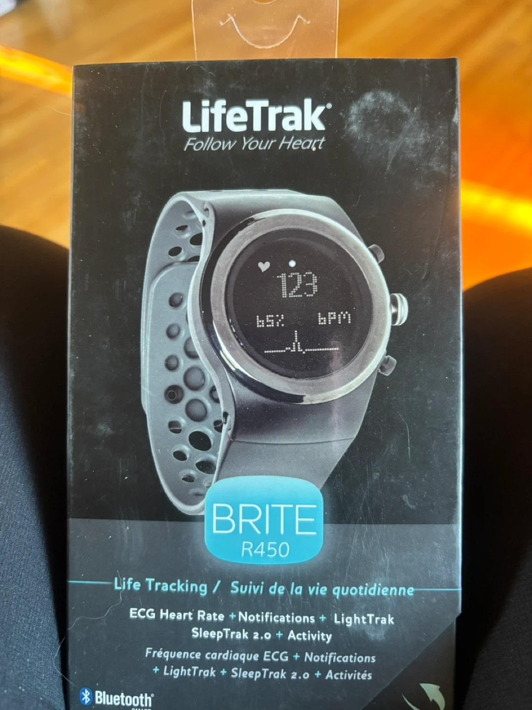 Selling a brand new LifeTrak Brite R450 fitness tracker! It's still in its original box and ready to help you track your activity. Key features include: - ECG heart rate monitoring - Notifications - LightTrak - SleepTrak 2.0 - Precise tracking - App connectivity It's also waterproof up to 30M. Get active and live healthy!