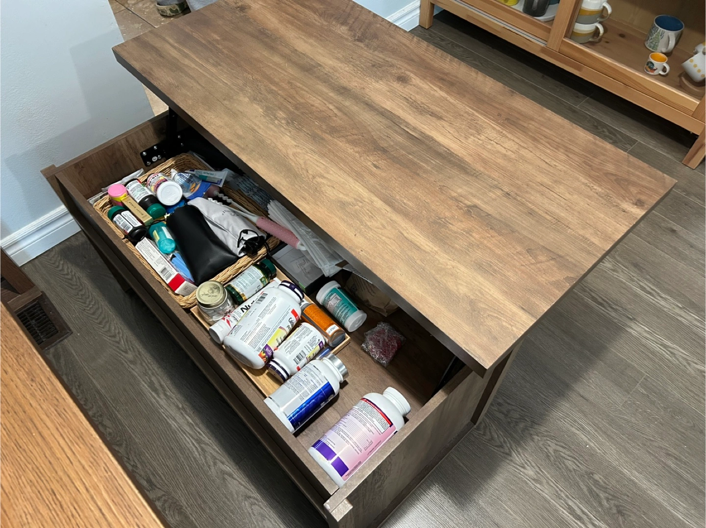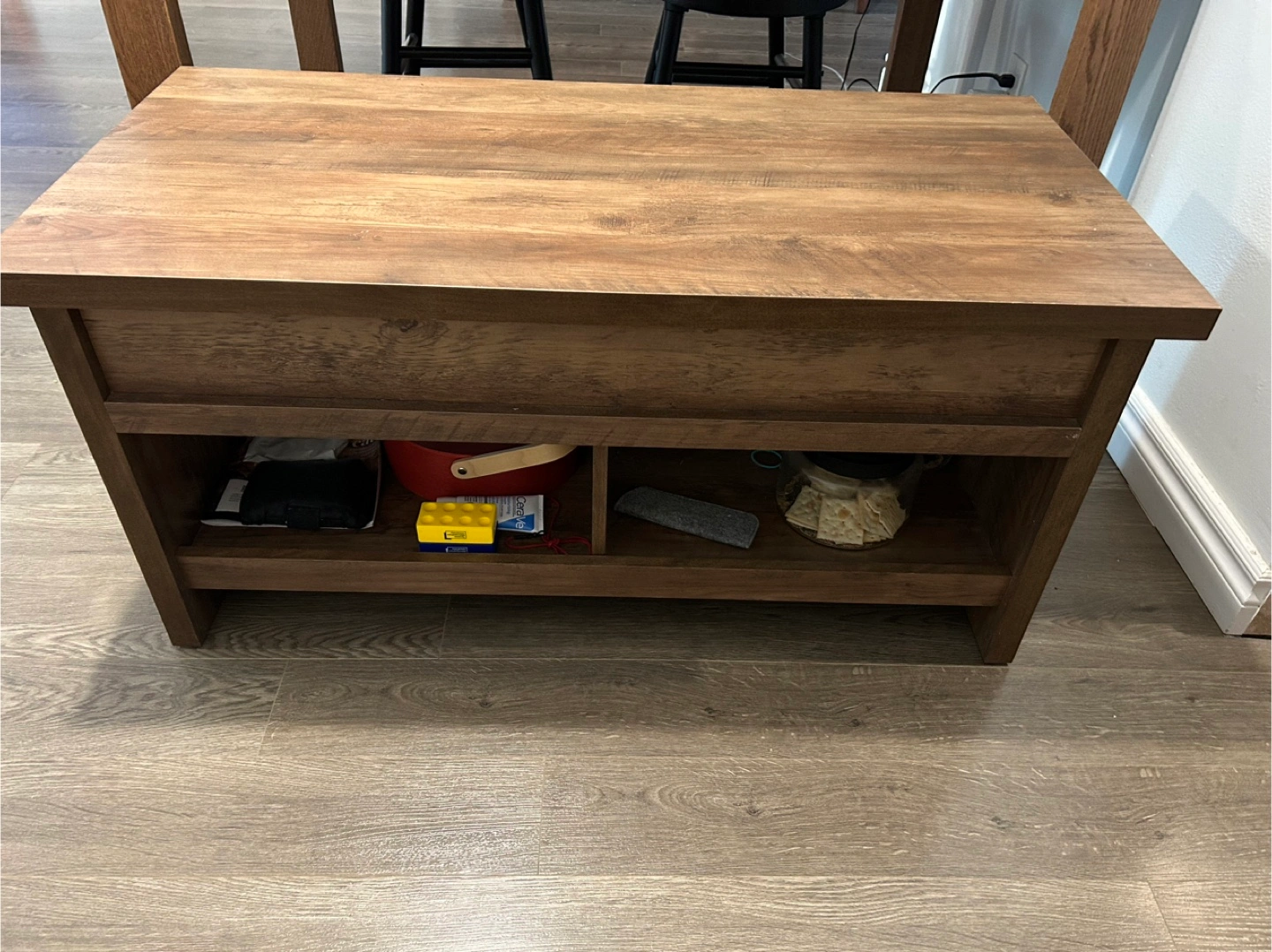 15This lift-top coffee table offers both style and functionality for your living space. It features a beautiful wood finish that complements various decor styles. The lift-top design provides a convenient elevated surface for working or dining, while the hidden storage compartment helps keep your living area tidy and organized. It's a great addition to any home!