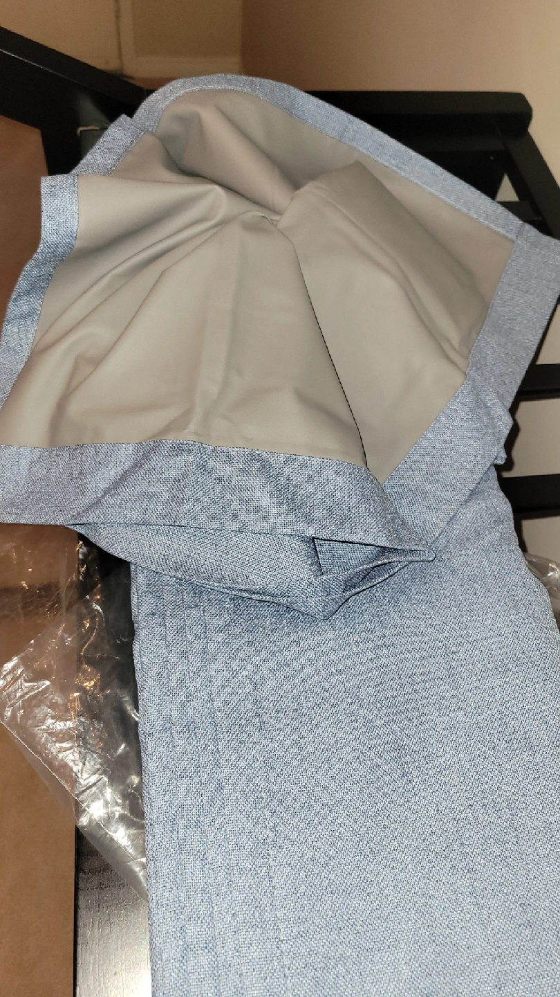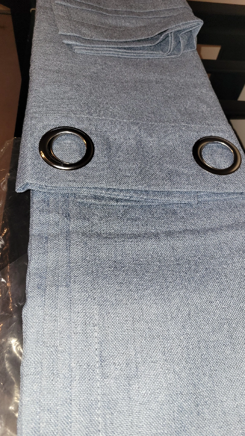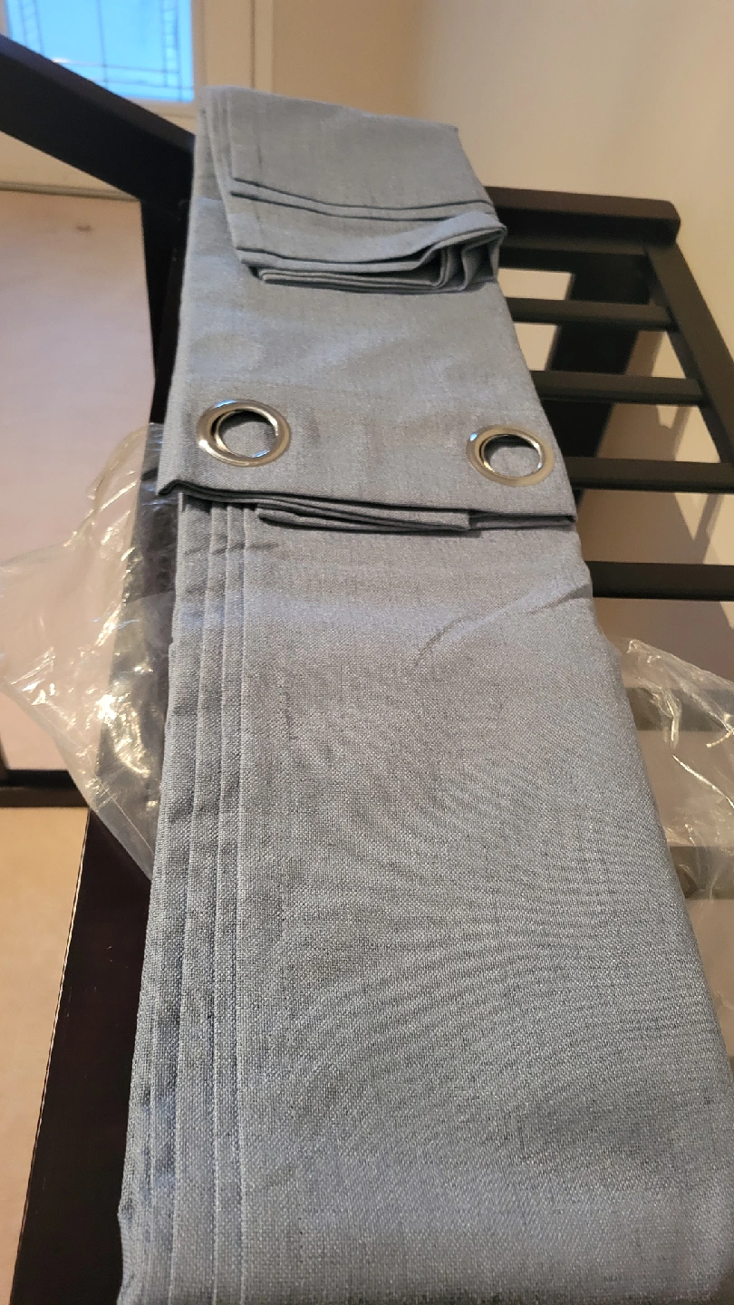 75Selling a set of light blue blackout curtains. They have grommets at the top for easy hanging. Great for adding a soft touch to any room! NEW