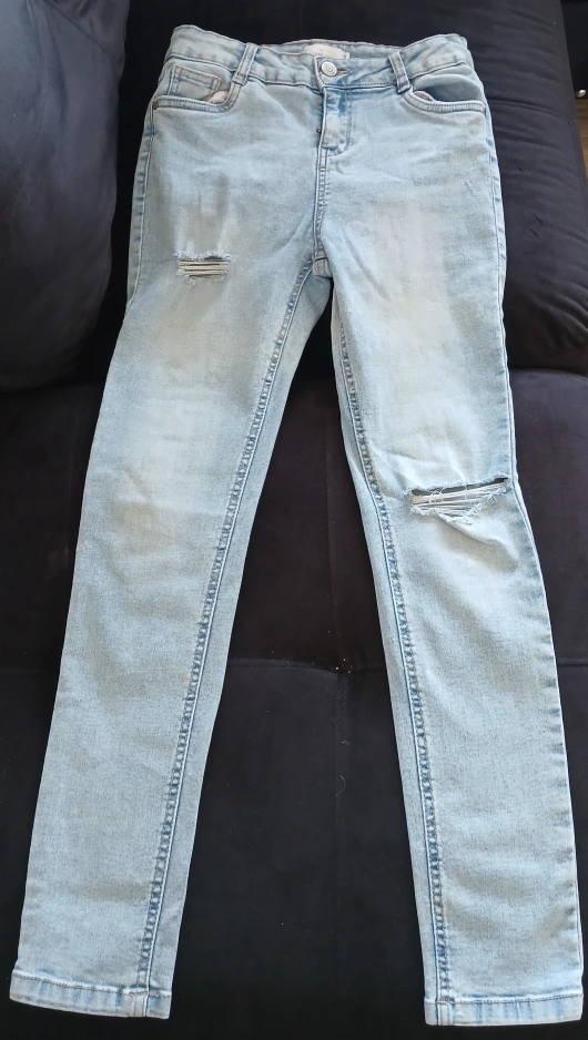 18Here are some light blue jeans with ripped details. They're in good condition and ready for a new home