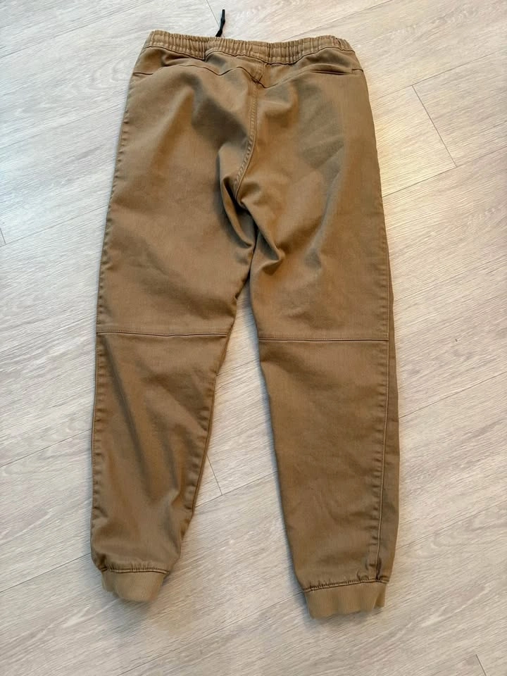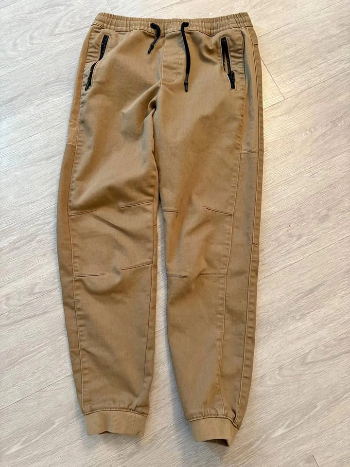 Light brown pants with a zipper and cuffed at the bottom. Size: 32 men’s Only worn about 3 times, selling because theyre a little too small for me. (Already washed and clean) Pickup in NW close to uofc -open to trades
