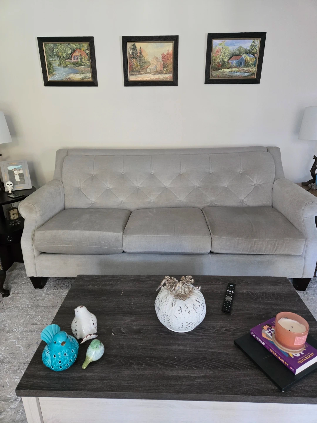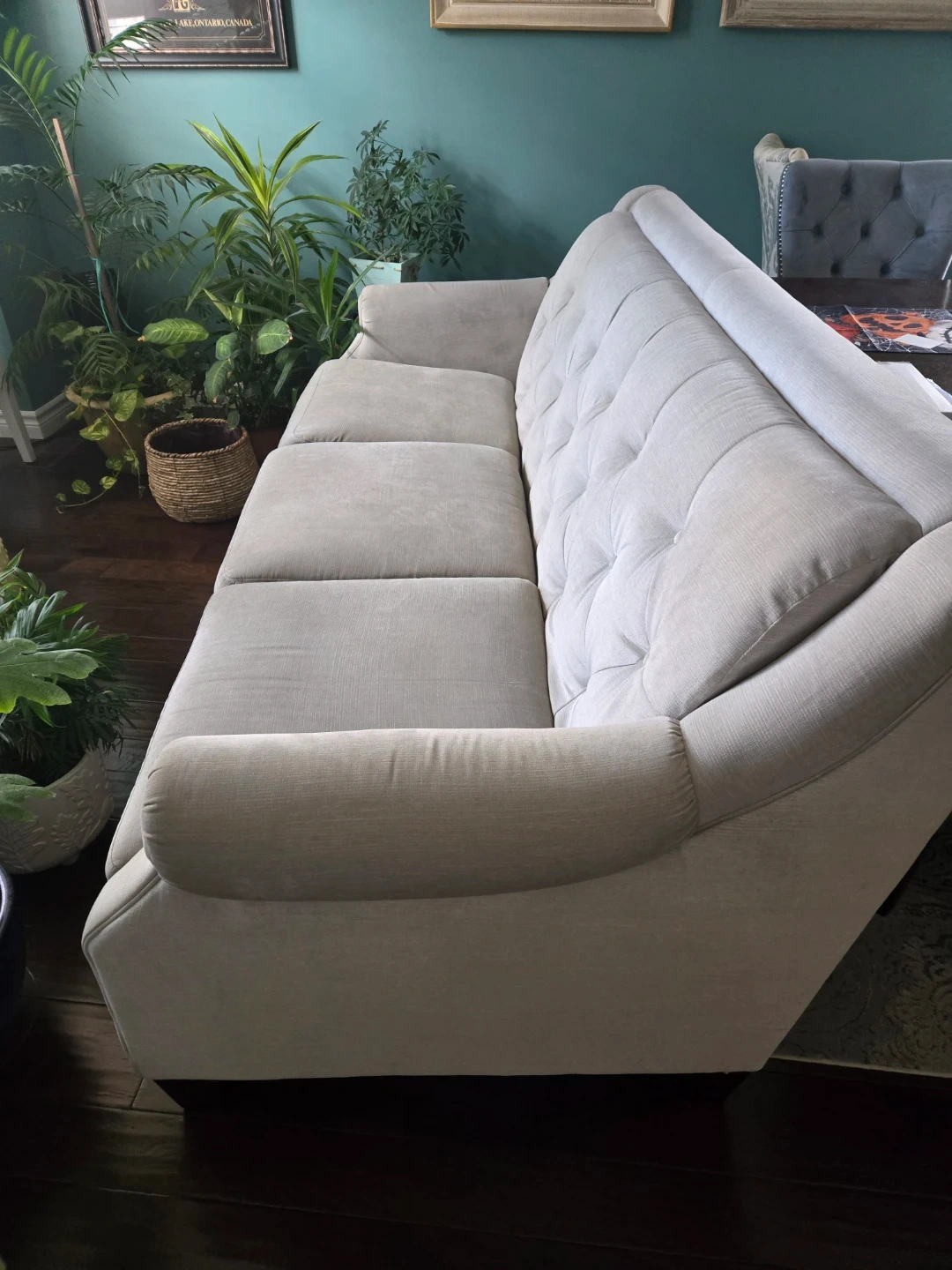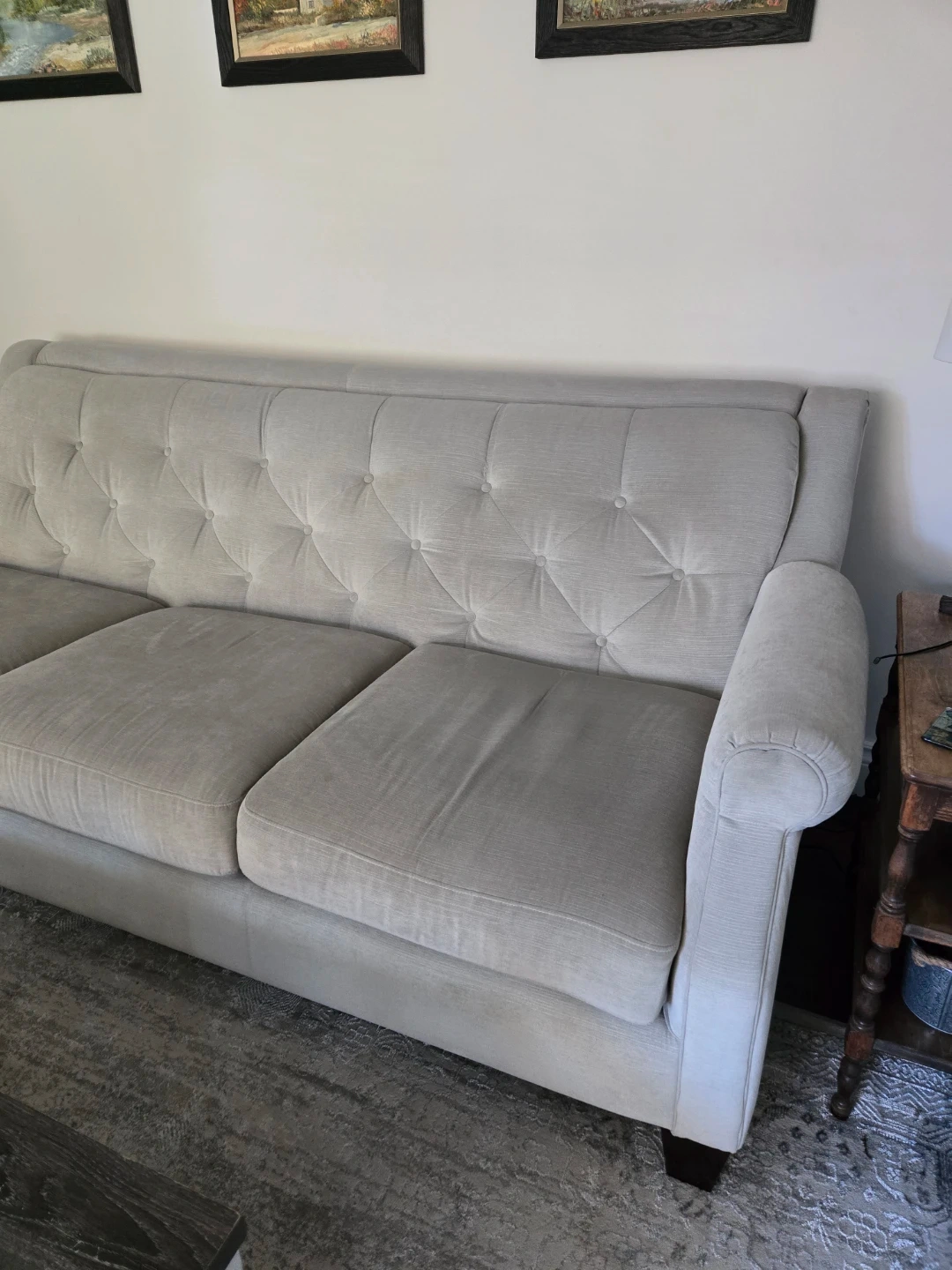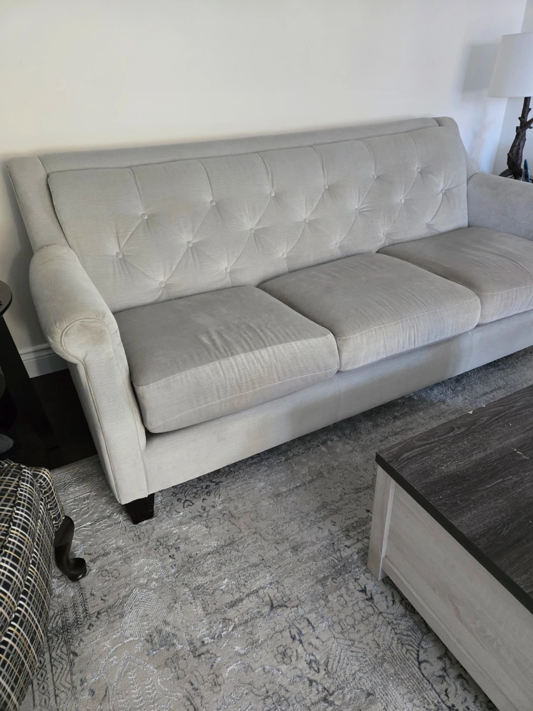 10Selling a light grey sofa from Lazy Boy in good condition! It features a classic button-tufted back and comfortable seating. Perfect for a living room or den. It's been gently used and well-maintained. Ready for a new home!